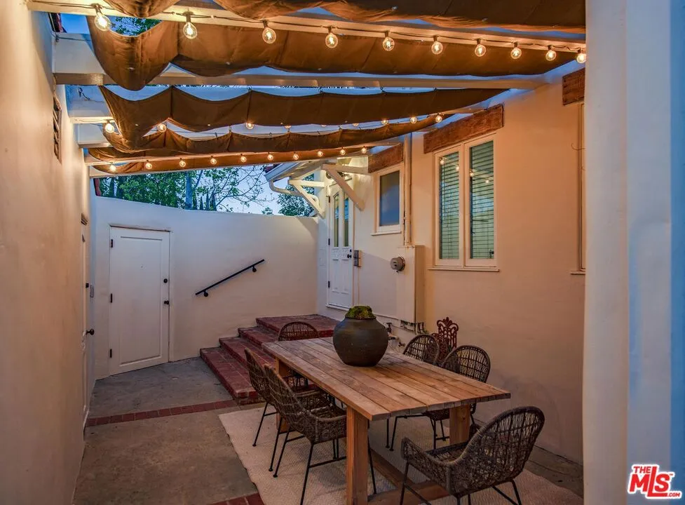 Set on a prominent corner lot in the heart of Beverly Hills, this distinctive Spanish Revival residence blends timeless character with thoughtful updates and exceptional potential. Elevated above the street and surrounded by lush landscaping, this soulful and sophisticated home showcases soaring exposed wood beam ceilings, clerestory windows and skylights that fill the interiors with natural light and highlight the custom ornamental metalwork and multiple artful fireplaces. The grand living room centers around a statement fireplace with curved detail, while a separate family room with a wet bar, built ins, and a second fireplace creates an ideal setting for entertaining alongside a formal dining area. The updated kitchen features quartz countertops, a stylish backsplash, ample cabinetry, generous pantry storage, and a sunny breakfast nook with built-in shelving. The primary suite opens to a romantic private terrace with an in-ground spa, creating a serene retreat and flowing seamlessly into a spacious patio ideal for outdoor dining. Additional highlights include recessed lighting, designer fixtures, water filtration, a basement area suited for flexible storage or utility use and a front driveway providing convenient off street parking for easy access. The classic white stucco exterior and red tile roof enhance the home's curb appeal, all within the award winning Beverly Hills Unified School District and just moments from world class shopping and dining. The corner lot configuration provides excellent potential to convert the garage into an ADU with its own separate entrance bordering Charleville Blvd, creating an ideal setup for additional income, guest quarters, or extended living, and buyers can take advantage of Beverly Hills' pre-approved ADU Program to help streamline the process.