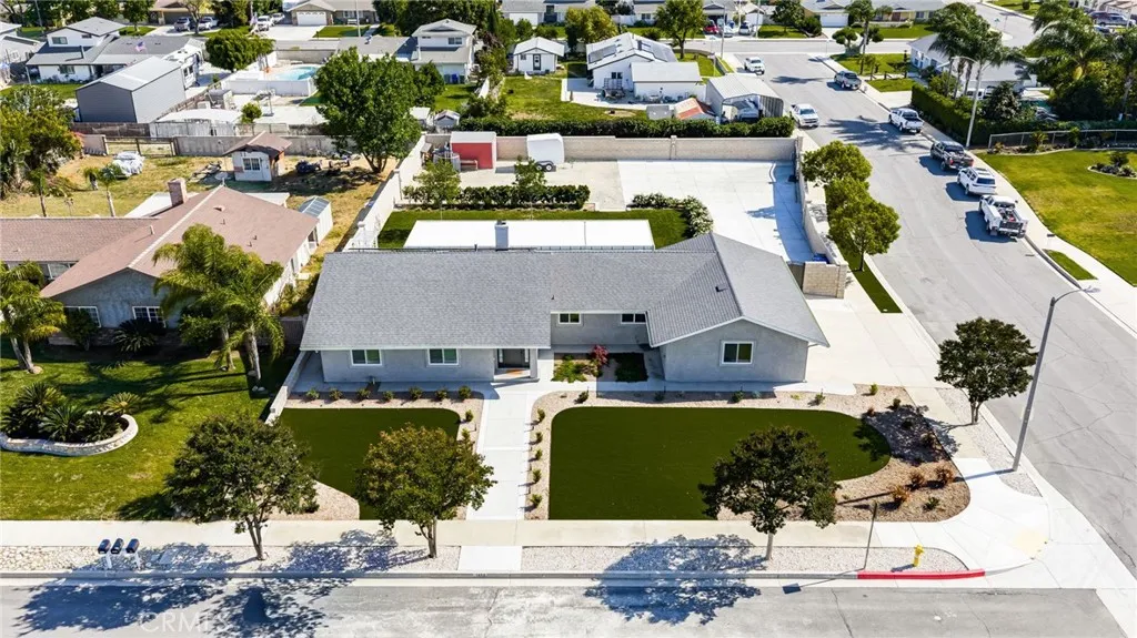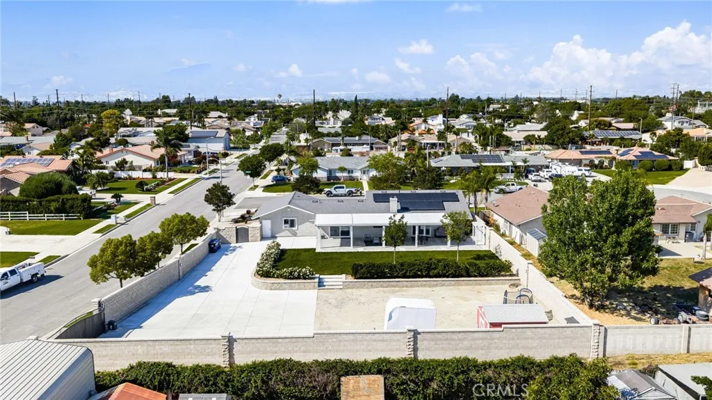 RARE FIND! This beautifully upgraded ranch style single-story home in Ontario offers 3 bedrooms and 2 bathrooms, perfectly situated on a large desirable corner lot. Designed for both comfort and versatility, the property includes RV hookup access with a septic tank and water connection at the rear—ideal for ease of use or future expansion. The home is equipped with an AquaTrue reverse osmosis water system and enclosed by a split-faced block wall, providing exceptional privacy. A subpanel in the backyard features a 240-volt plug, ready for an RV garage or potential ADU build-out. Inside, you’ll find premium Thor appliances, custom interior doors, and shutters that add a refined touch throughout. Major upgrades include a new roof, a Bryant HVAC system, and a full home repipe with overhead PEX piping. Energy efficiency is a standout feature with owned solar, producing 9.51 MWh in 2025 and reaching up to 37 kWh in peak daily production. The system includes app-based monitoring through SolarEdge, giving you real-time insight into energy performance and savings. Step outside to a newly installed 16’ x 48’ insulated patio cover, complete with LED lighting, three ceiling fans, and an electric outlet—perfect for entertaining year-round. The custom back gate features a stainless steel underground track and is equipped with an automatic LiftMaster opener, photo eye, and edge sensor for convenience and security. This home blends thoughtful upgrades with future potential, making it a standout opportunity in a prime location.
