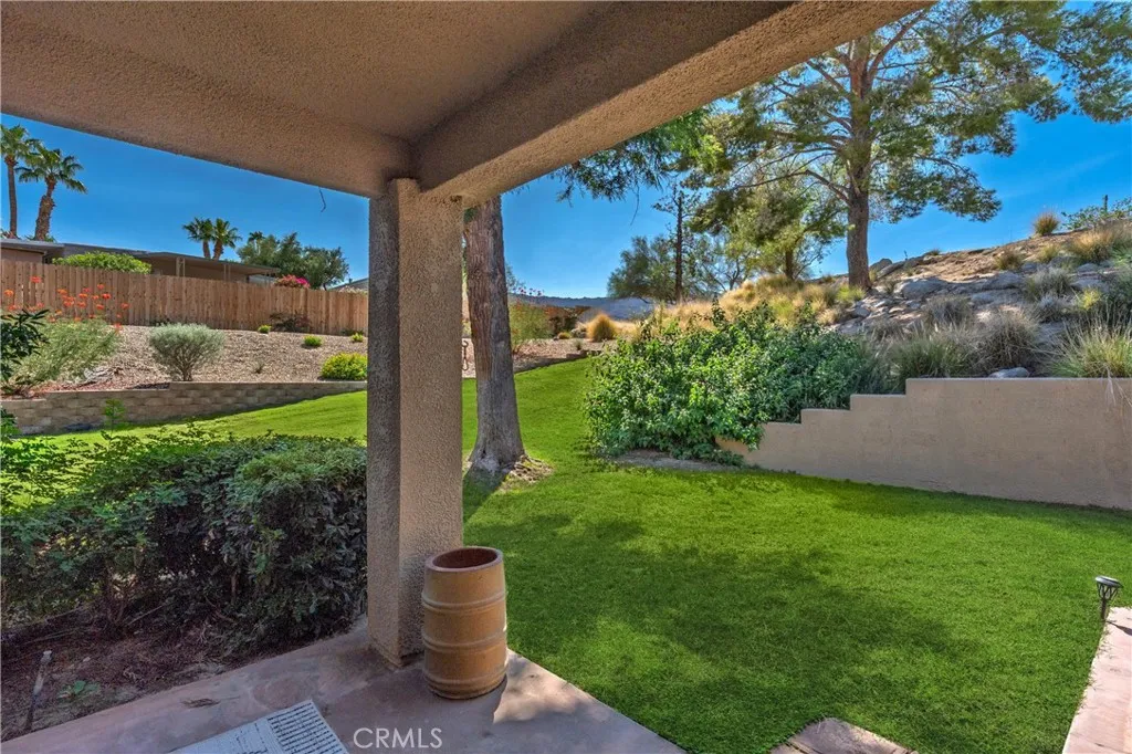 Beautifully remodeled S Palm Desert 2 bedroom, 2 bath home on private corner lot and direct access to walking trails! This spacious home has a chef inspired kitchen, quartz countertops, stainless steel appliances, high ceilings, custom shutters throughout, recessed lighting/fans, a separate indoor laundry room, large master bedroom with en-suite bath, 4 outdoor patios and an attached 2 car garage with plenty of storage. This desert resort-like home is a private corner unit nestled within a beautiful desert setting with views and located just a short drive from El Paseo (for easy access to shopping, dining, and entertainment), the Living Desert Zoo and Gardens, the Art Smith Trailhead and the Indian Canyons offering unparalleled outdoor adventures.
