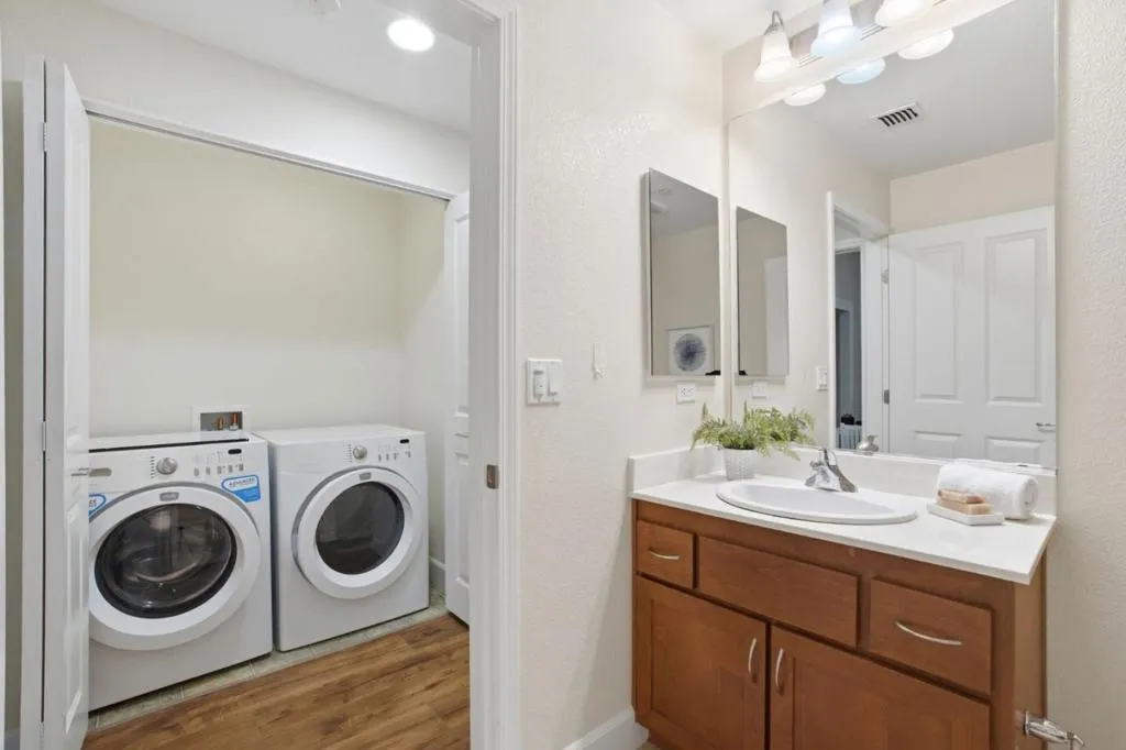Refined 2BR/2BA in the sought-after Park Broadway community in Millbrae a - luxury condominium building first-floor home offering high ceilings, modern open floor plan, orientation along the Broadway side, providing both privacy and serene neighborhood views. 2 garage spots! The interior has been thoughtfully updated with new flooring and a fresh paint palette with modern color scheme. A contemporary kitchen with granite countertops and stainless steel appliances flows into an expansive living and dining area, designed for both entertaining and everyday living. A private balcony with additional storage extends the usable space & make this a most inviting home on the Peninsula! The primary suite boasts a walk-in closet and en-suite bath. Additional elements include a built-in office nook, in-unit laundry, central heat and air conditioning, and secured garage parking. The community features outdoor spa, the indoor fitness center, and an outdoor BBQ area! The location is close to Millbrae downtown corridor, ample dining and shopping options, as well as convenient access to BART, Caltrain, San Francisco International Airport, and major commuter routes - positioning this home as a well-balanced combination of design, volume, and connectivity.