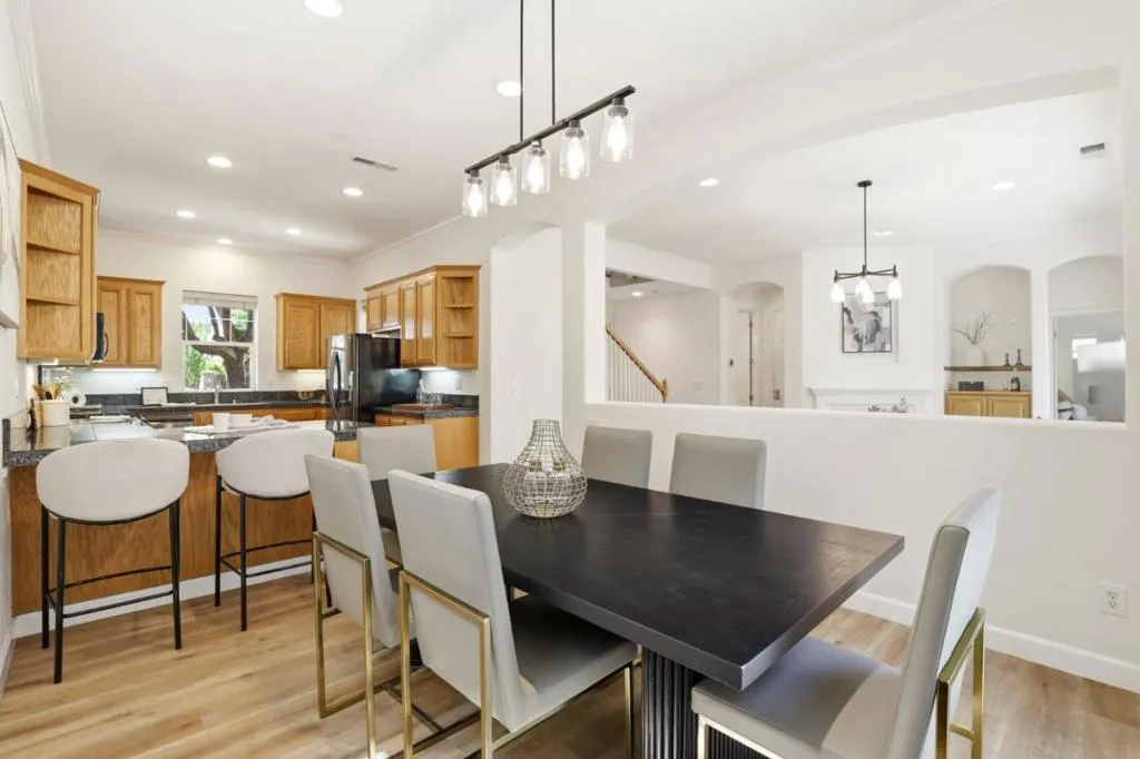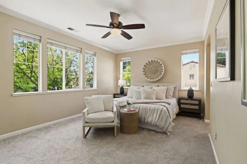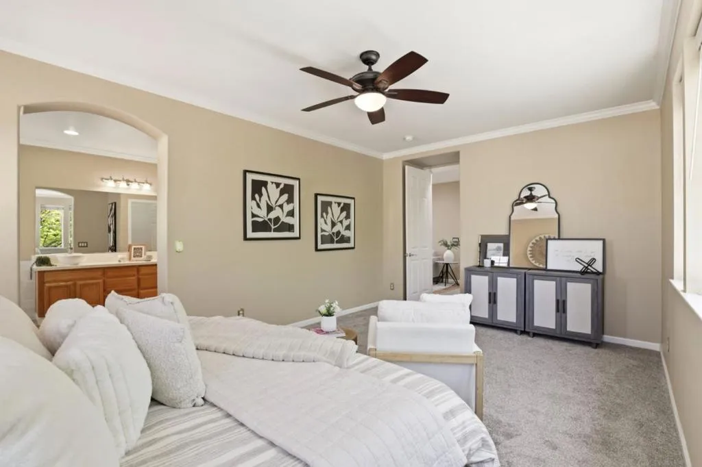 Tee up the ultimate lifestyle at 2521 Blairgowery Court, a turnkey 4BR retreat within Eagle Ridge Golf Club, ideally situated between the clubhouse and park. Flexible layout includes a main level bedroom plus full bath, dedicated office, and a bright loft converted from the 5th bedroom perfect for den, gym, or media room. Recent upgrades: new Bosch A/C and furnace, remodeled primary bath with new tub, tile shower, flooring, counters, fixtures and sinks, plus new toilets and bath flooring throughout. Smart features include B Hive irrigation, Nest thermostat, and electronic entry. Kitchen offers pull out drawers, new faucet, and newer Samsung appliances. Enjoy a Bradford White water heater, water softener, newer pressure valve, existing copper piping, and a professional built in garage cabinetry and shelving system offering exceptional organization. Recent backyard landscaping, retractable awning, and fountain create a private oasis. With championship golf, dining, and recreation at your doorstep, this Gilroy gem is move in ready. Residents also enjoy scenic trails, vibrant community social events, and the peace of mind from a security guard gated entry.