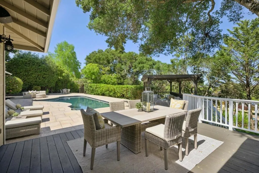 Step into ultimate luxury with this spacious 6 BD, 5.5 BA home spanning +/- 4,746 SQFT on over 1/2 an acre of beautifully landscaped grounds. Perfect for entertaining and serene living, this home blends a versatile floorplan with thoughtful updates, including a significant 2017-2018 remodel and expansion. The main level is a showstopper, featuring a chef's kitchen with top-tier appliances, an oversized island, and seamless flow to the formal living & dining spaces. Sunlight pours through a wall of windows, framing views of the sparkling pool and lush gardens. This level also offers a private wing with two BDs, a shared BA and an ensuite BD with high ceilings, plus an additional BD, full BA, powder room, laundry room, and interior garage access. Upstairs, two ensuite retreats await, including the primary suite with a spa-like BA, a walk-in closet that dazzles and a 2nd W/D. The lower level living area opens to a tranquil patio & expansive lawn, ideal for outdoor entertaining or quiet mornings. High ceilings, hardwood floors, skylights, fruit trees and modern comforts like A/C, lots of storage and a spacious driveway complete the home. Located in a top-tier school district with easy access to 280 and 92, this home offers the perfect balance of convenience, elegance, and lifestyle.