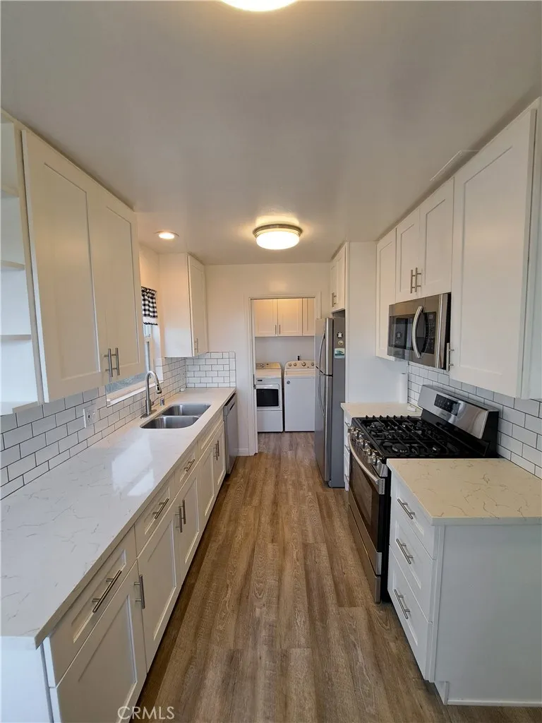 Welcome to your gorgeous downtown adjacent home in the most happening neighborhood in Ventura! This lovely lower unit in a sweet duplex on Poli Street has everything you want and need for your beachy lifestyle. Ocean views; fresh paint; laminate floors in sought-after grey-wood palette; all high end appliances included in kitchen & laundry - refrigerator, washer/dryer, microwave, range/oven, Kohler faucet, and garbage disposal; thoughtful window treatments include wide profile blinds & drapery rods awaiting your vision; beautifully tiled bathroom with tub; fabulous outdoor spaces in front yard, over garage deck and spacious backyard will have you saying "yes please" to your own wellness regime plus a great entertainment space for friends! Beautifully landscaped with gardener service included. Single car garage and ample street parking in this wonderful neighborhood walking distance to the best of Main Street Ventura - restaurants, shopping, parks, and more!