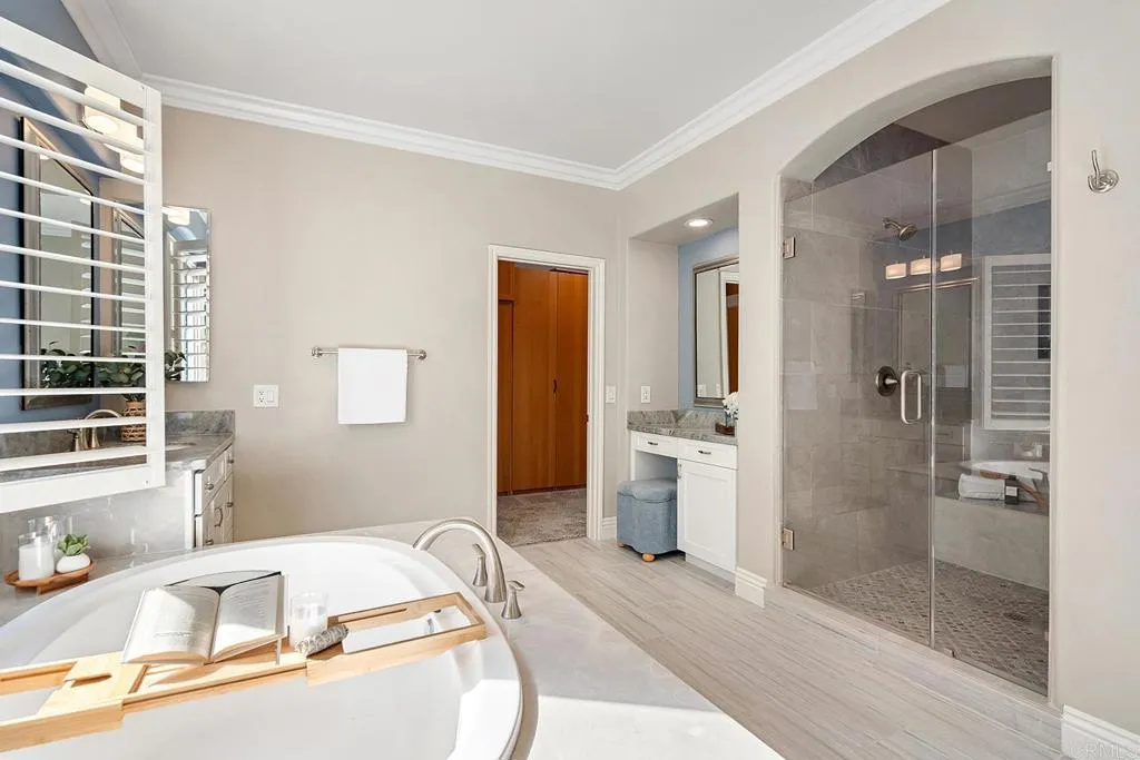 Tucked away on a quiet cul-de-sac in the highly desirable La Costa Valley community, 3015 Corte Tilo offers the space, layout, and upgrades you are looking for. This expansive five-bedroom, five-and-a-half-bath home combines a functional floor plan with elevated finishes, creating a comfortable yet impressive living experience. Since its 2015 purchase, the home has undergone significant updates, highlighted by a beautifully remodeled kitchen and a fully transformed primary bathroom. The kitchen now serves as a true centerpiece—designed for both daily living and entertaining—with generous prep space, modern finishes, and a seamless connection to the main living areas. The versatile layout includes a full bedroom and bathroom on the first floor, ideal for guests, multigenerational living, or a private office. Upstairs, a spacious loft provides additional flexibility as a quiet sunny ready area or secondary lounge. Each junior suite is well-sized and offers its own en-suite bath, while the primary suite delivers a private retreat with a spa-like feel and thoughtful upgrades throughout including louvered shutters. Step outside to a backyard designed for Southern California living. The private setting features mature landscaping along with inviting spaces for relaxing and entertaining, including a built-in BBQ area with prep sink, fire pit, and spa with waterfall feature. Additional highlights include a large three-car garage, multiple living areas, and access to La Costa Valley’s sought-after amenities such as a resort-style pool, tennis courts, fitness center, and scenic parks and trails. Located within the Encinitas School District and just minutes from top-rated schools, shopping, dining, golf, and Carlsbad’s renowned beaches, this home offers an exceptional blend of size, location, and modern updates in one of North County’s most established communities. Perfectly positioned in La Costa—right along the border of Carlsbad and Encinitas—this location offers the best of North County living. Just minutes away are some of the nation’s best surf breaks and beaches, along with the vibrant coastal lifestyle that makes this area so desirable. Convenience is equally impressive, with easy access to the airport, major freeways, and key San Diego destinations including Balboa Park, the San Diego Zoo, and the Safari Park. Local attractions such as LEGOLAND are just a short drive away, while Disneyland can be reached in approximately an hour. The home is also ideally situated near major employment hubs throughout North County and greater San Diego, making it an excellent choice for those seeking both lifestyle and accessibility.