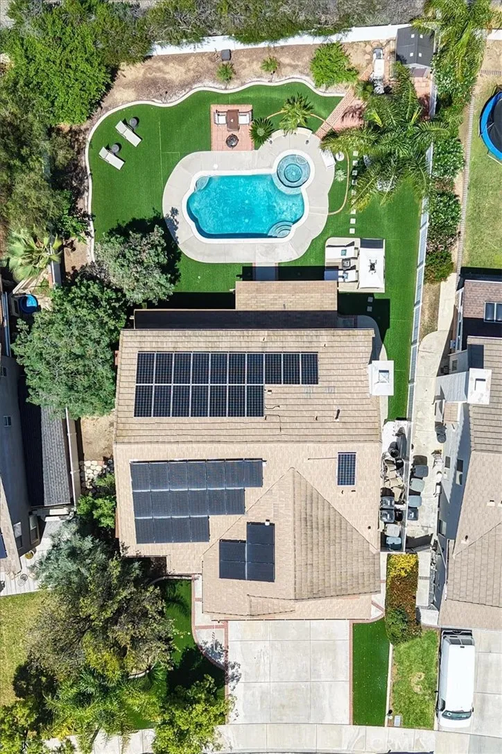 Welcome to this stunning four-bedroom, three-bath home in the highly desirable city of Wildomar, California! Boasting 3,124 sq ft of living space on a 10,019 sq ft lot, this property features a beautiful backyard resort style. The back yard has an amazing pool and spa, perfect for relaxation and entertainment; Mature fruit trees lush landscaping and artificial grass for easy maintenance. The front yard has nice big trees and great curb appeal with golf-like turf. The garage includes a mini-split system for those hot summer days. This is a fantastic value, considering the significant savings on utilities. Don't miss the opportunity to make this dream home yours! Nestled in a very nice community, this home offers an exceptional floor plan with 1 full bedroom and bath downstairs. 3 bedrooms and 2 bathrooms upstairs for ultimate privacy. The kitchen layout is perfect with an open concept into the living room and backyard oasis. What really sets this property apart is the incredible FREE UTILITY PACKAGE: you only pay for water, gas, and trash! The owner covers up to $800 of the electric bill per month (SOLAR), along with pool maintenance (approx. $225/month), landscaper to cover all the items the yard requires to maintain its luxurious look (approx. $150/month) and house alarm fees (approx. $85/month) totaling in just under $1,300.00 in estimated bills the landlord is potentially willing to pay making the actual rent for this home closer to $4,700.00 per month.