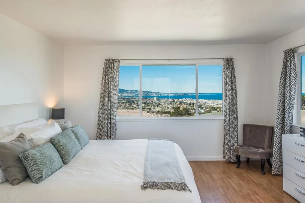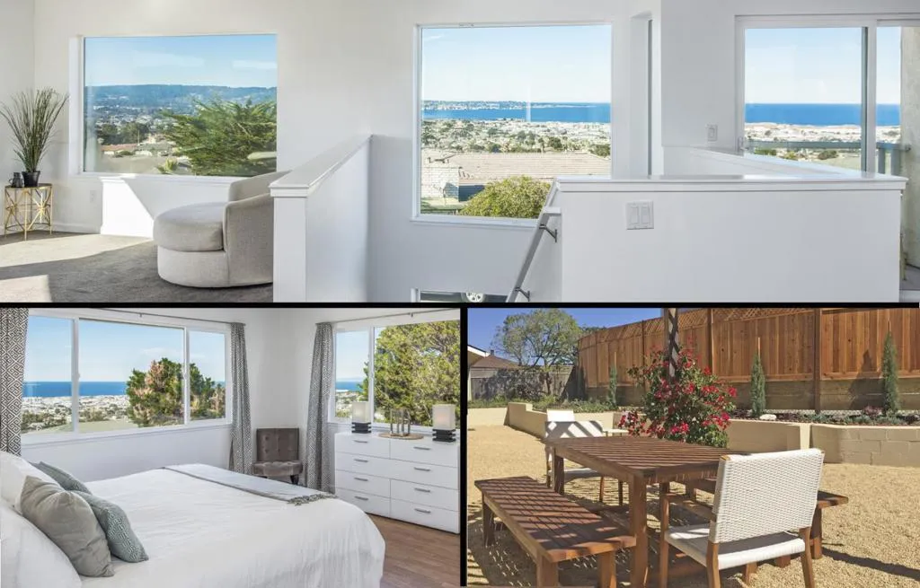 Own one of the very best views in Monterey Bay, as well as one of the most lucrative rental investments in the region! Atop the highest hill in Seaside, its breathtaking panoramic views of the entire bay include the ocean, downtown, and the pastoral mountains of Monterey. A true one of a kind location! Centrally located in the exclusive neighborhood of Mescal Heights, top schools, dining, and entertainment are only 10 minutes away. This spacious home has 7 bedrooms, 2 living rooms, and a large kitchen next to a sunken dining room with a fireplace. 3 bedrooms face the ocean and 2 master bedrooms have ensuite bathrooms. The backyard has multiple seating areas, landscaping, and two light blue water towers behind the property. This is an extremely successful short term rental (STR) with a 2025 gross annual income of over $180,000 and a 4.9/5 rating on Airbnb and 10/10 rating on VRBO. Seaside is one of the few cities that allows STRs, making this a rare and valuable investment. (Buyer must obtain their own rental permit.) This home comes completely furnished with beds, sofas, dining table for 8-10, outdoor furniture, kitchen supplies, and linens.. Decor and artwork reflect a contemporary and relaxed style, and are included in this sale. Come see this crown jewel of the Monterey Bay!