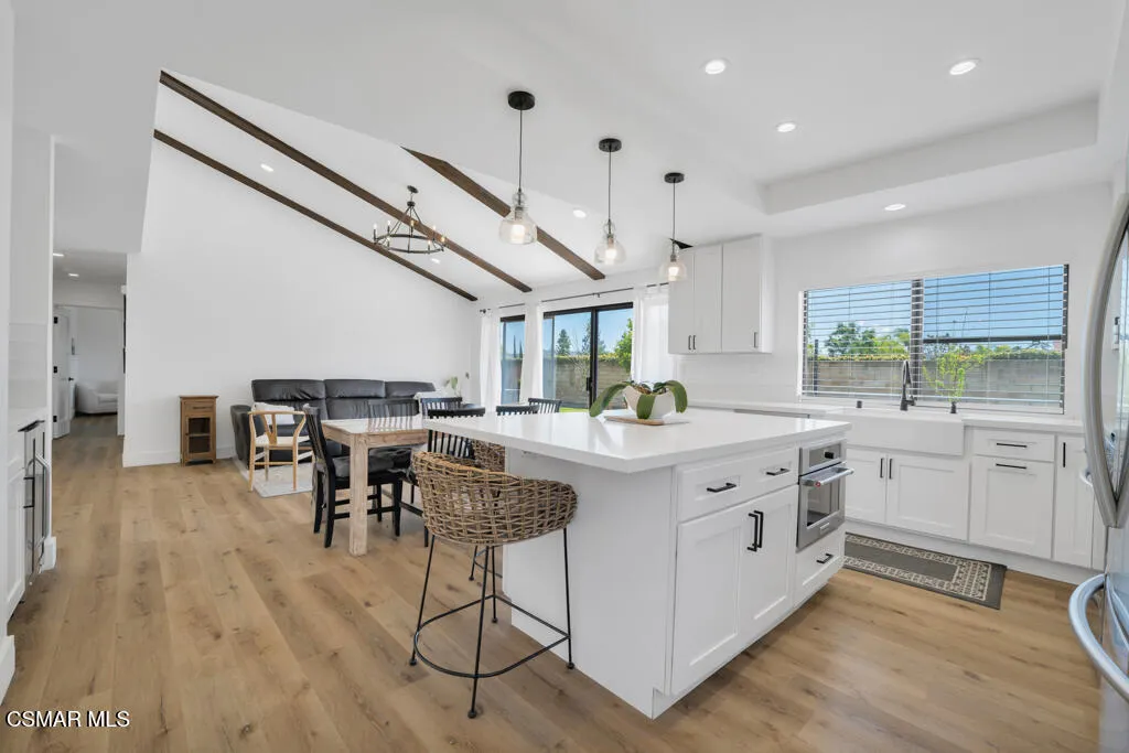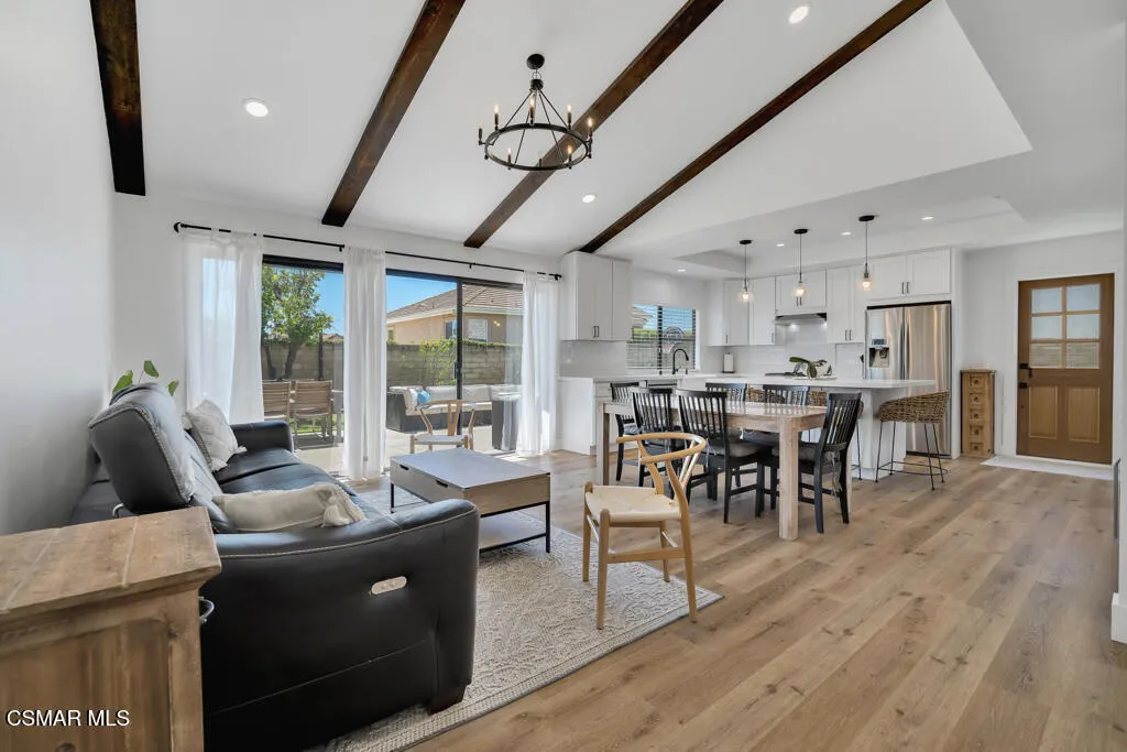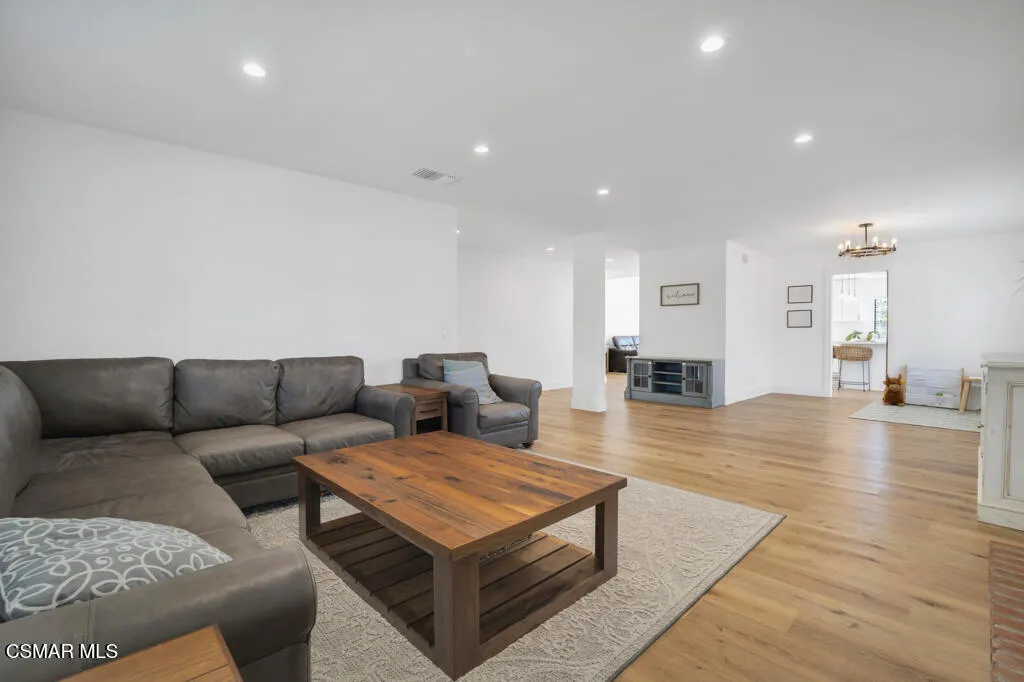 Sensational remodeled single-story home in a highly sought-after neighborhood--with RV access! This rarely available oversized 3-bedroom home offers a bright open floorplan designed for both comfortable living and effortless entertaining.Step inside to a spacious living room that flows seamlessly into the dining area, open kitchen, and inviting family room with soaring vaulted ceilings and a stunning wall of windows that fills the home with natural light. The kitchen has been beautifully remodeled with white cabinetry, quartz countertops, a breakfast bar, new appliances, a walk-in pantry, and even a stylish wet bar with a beverage refrigerator--perfect for hosting.The home features two generously sized secondary bedrooms, along with an expansive primary suite complete with a large walk-in closet. Additional highlights include indoor laundry, a two-car garage, and dedicated RV access with ample space.Nearly every detail has been thoughtfully upgraded, including recessed lighting, textured ceilings, new solid interior doors and moldings, luxury vinyl flooring throughout, updated tile in bathrooms and laundry, remodeled bathrooms with modern finishes, a newer furnace and A/C compressor, whole house water filter, and a tankless water heater.Outside, enjoy a professionally landscaped backyard with new turf and drainage, plus a convenient side yard accessible from the kitchen--ideal for everyday living and entertaining alike.Located just moments from Lemon Park, the post office, and nearby shopping and dining, this home truly offers the best of comfort, style, and convenience. A rare opportunity you won't want to miss out on!
