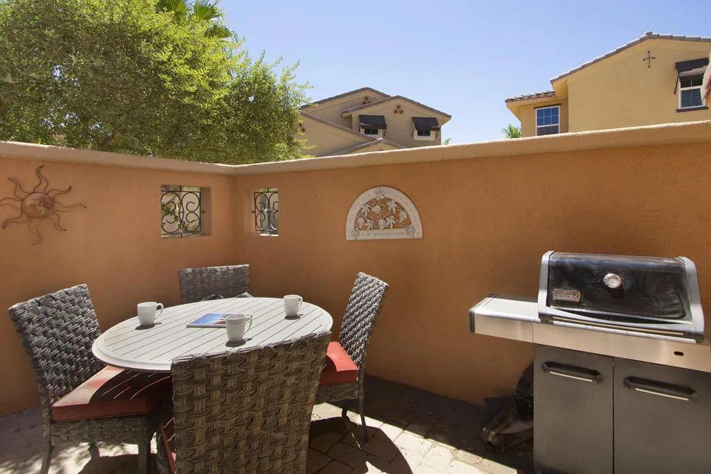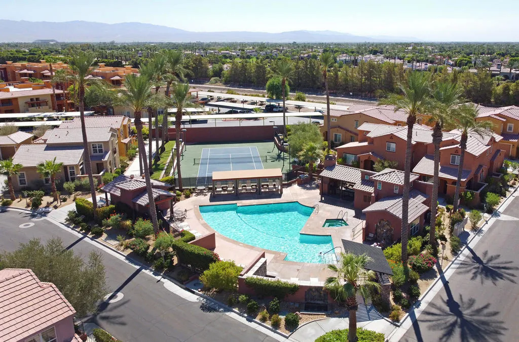 Move-in ready, this detached single-family residence is nestled in South La Quinta within the Codorniz community. A private courtyard entry opens to a light-filled interior designed for effortless desert living. The spacious great room features soaring cathedral ceilings, tile flooring, and seamless flow into the dining area and a thoughtfully appointed kitchen with quartz countertops, stainless steel appliances, and ample cabinetry--creating an inviting setting for both everyday living and entertaining.This well-designed layout offers dual upgraded en-suite bedrooms, providing exceptional privacy and flexibility--ideal for guests, shared ownership, or lock-and-leave living--while a stylish main-level powder room adds convenience for visitors. Meticulous upkeep is evident throughout. Enjoy quiet mornings or host memorable gatherings on the private patio just off the living area, perfectly suited for indoor-outdoor living. Community amenities include a pool and spa, fitness center, tennis court, BBQ area, and outdoor fireplace--perfect for gathering with friends or unwinding under the desert sky. Ideally located near Old Town La Quinta, residents enjoy close proximity to world-class golf, scenic hiking and biking trails, dining, and boutique shopping. Experience low-maintenance desert living in this charming South La Quinta community.