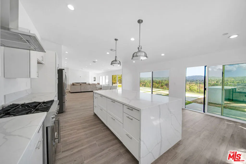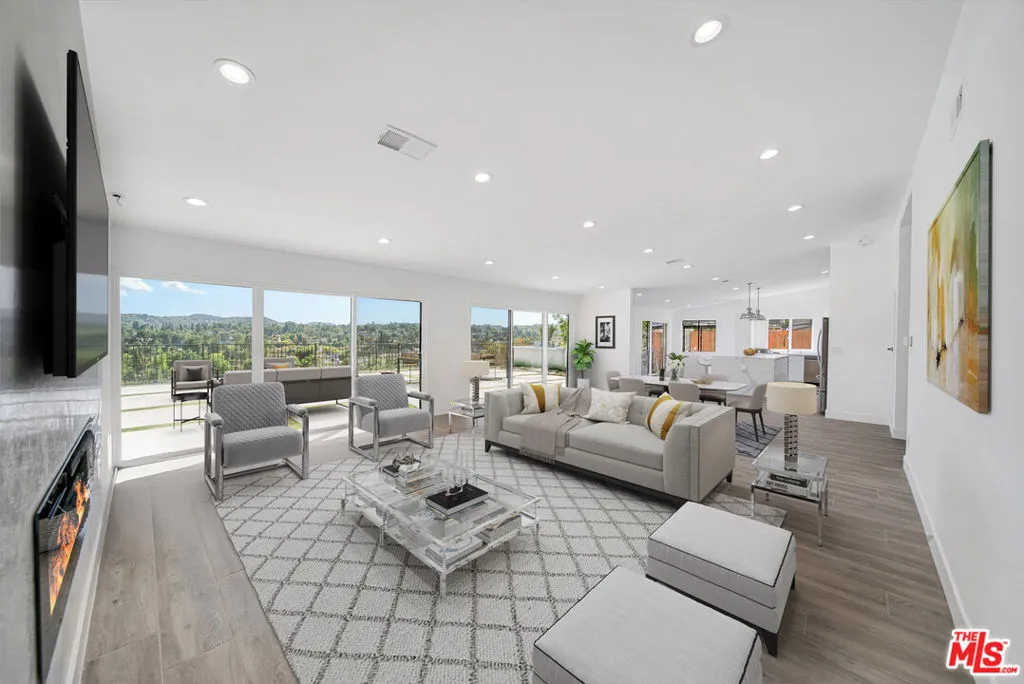 Amazing panoramic views from this single story Woodland Hills home. A gated private entry leads to a newly renovated open floor plan with 4 bedrooms and 4 bathrooms. Brand new chef's kitchen with large island, laminate flooring, new windows, and much much more. Walking distance to schools and shopping.