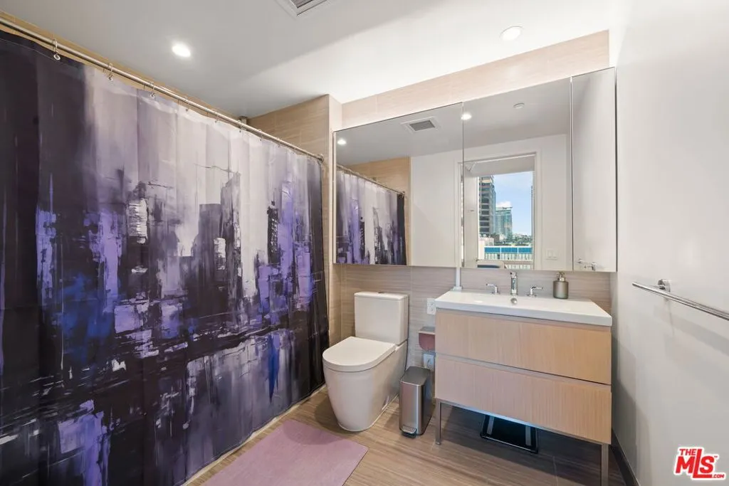 Indulge in refined high-rise living in this exquisite one-bedroom residence at Metropolis Tower II, one of Downtown Los Angeles' premier luxury addresses. Showcasing a sophisticated open-concept design, this residence is bathed in natural light through dramatic floor-to-ceiling windows, offering captivating skyline views and an elevated sense of space. Every detail has been thoughtfully curated, from the sleek, modern finishes to the chef-caliber kitchen appointed with premium appliances, custom cabinetry, and clean, contemporary lines. The seamless flow between living, dining, and kitchen spaces creates an effortless setting for both intimate relaxation and upscale entertaining. The bedroom serves as a tranquil retreat, complete with generous closet space and expansive windows framing the city beyond. The spa-inspired bathroom features refined finishes designed for comfort and style. An in-unit washer and dryer add everyday convenience to this polished residence. Metropolis Tower II offers over 1.7 acres of resort-caliber amenities, including a sparkling pool and spa, expansive sun deck, outdoor lounges with BBQ areas, serene sky and meditation gardens, and a state-of-the-art fitness center. Residents also enjoy exclusive access to a business lounge, screening room, billiards room, children's play areas, dog park, golf putting green, EV charging stations, and 24-hour concierge and security services. Perfectly positioned in the vibrant South Park district, moments from world-class dining, shopping, and entertainment, this residence delivers a seamless blend of luxury, convenience, and iconic city living.
