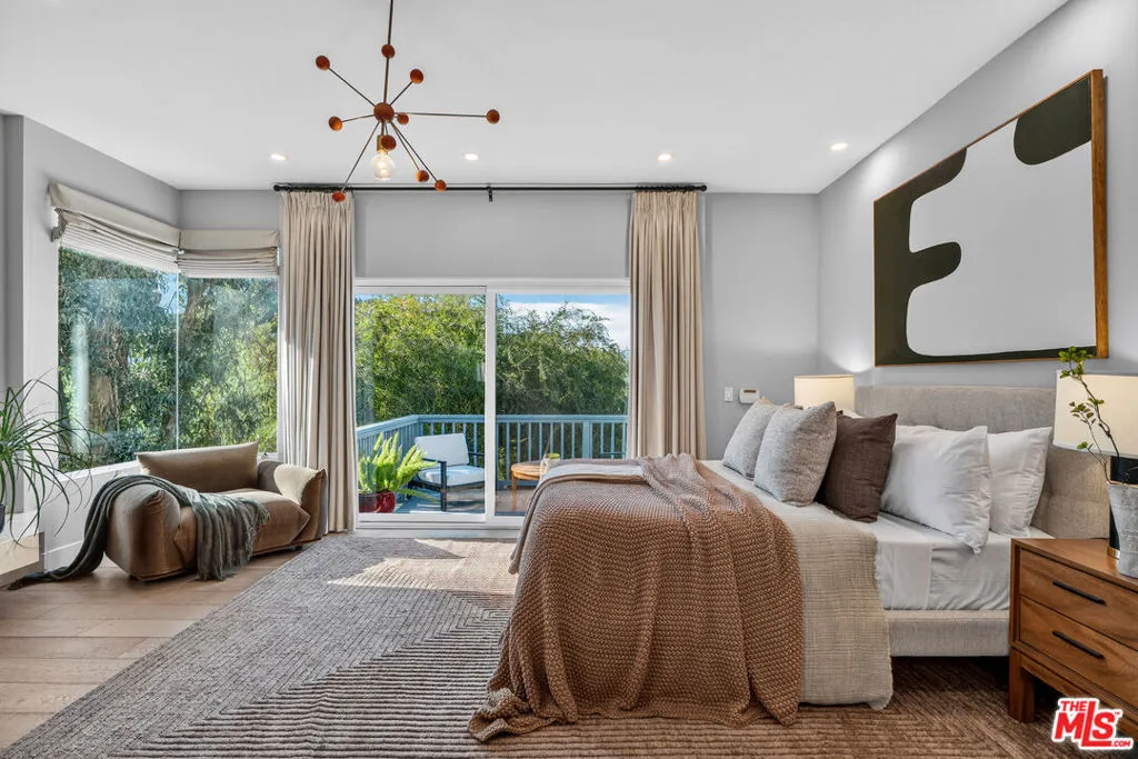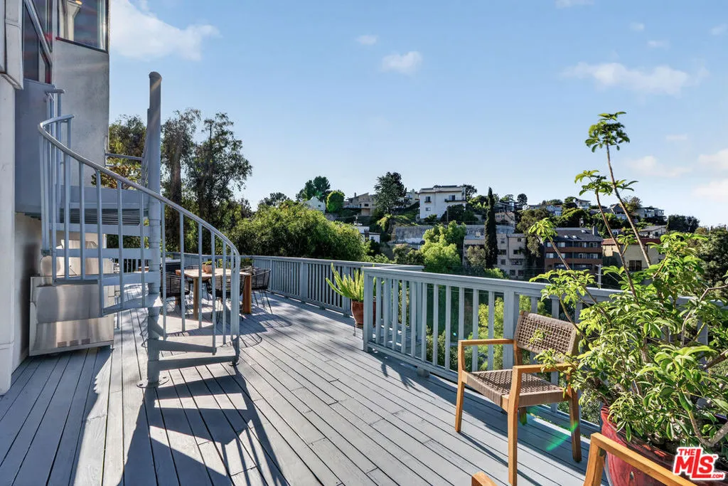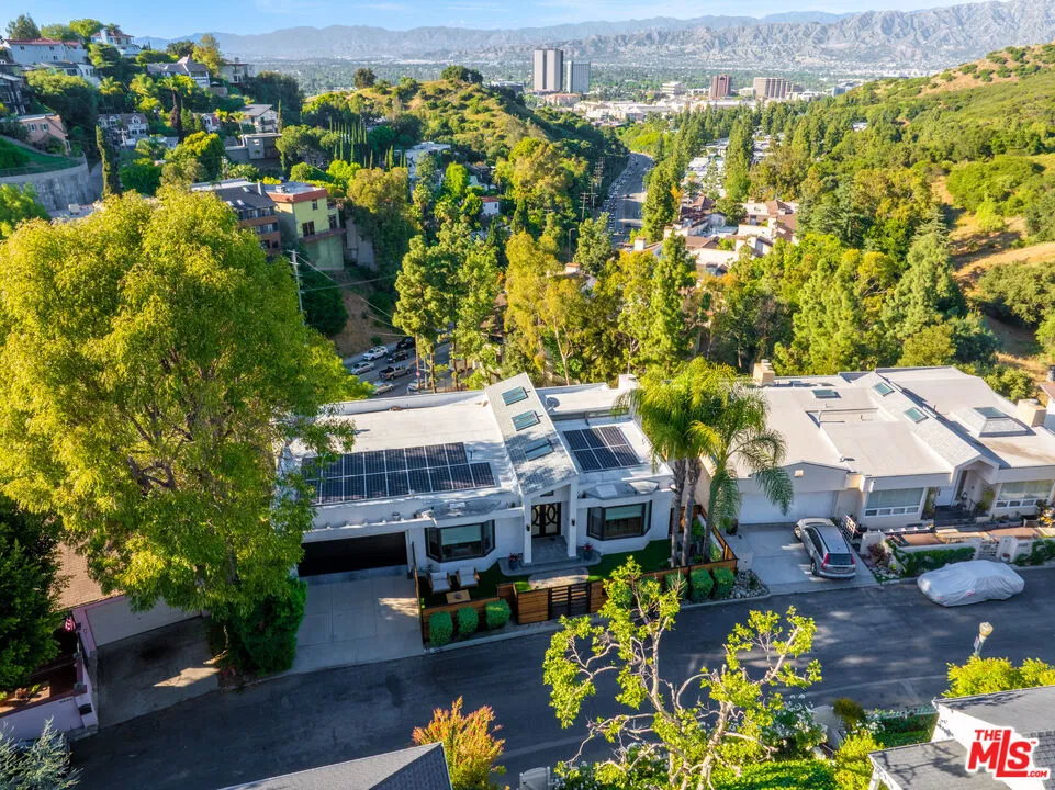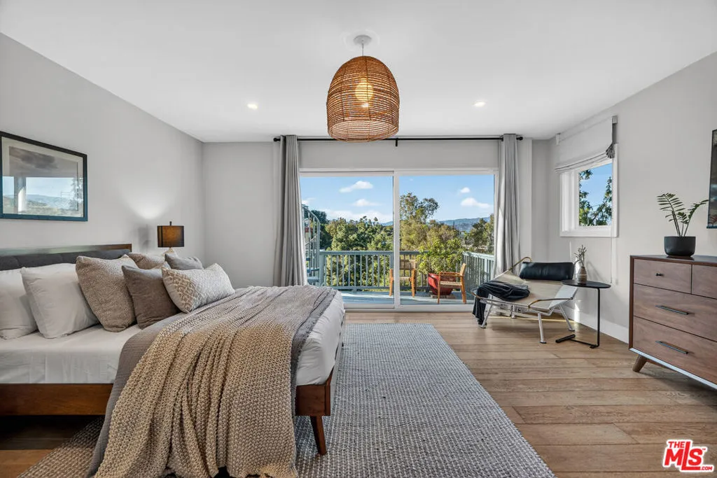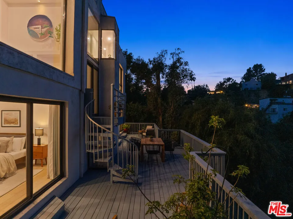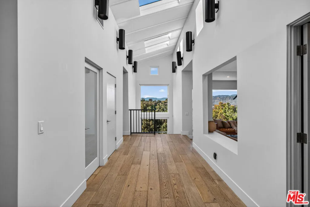 Welcome to "The Primera Observatory," a design-driven contemporary retreat perched in the highly sought-after enclave of Hollywood Hills East. Discreetly positioned on a private cul de sac, offering rare seclusion along a quiet hillside setting and close to hiking trails, this beautifully upgraded residence captures sweeping canyon, mountain, and city views, offering a rare blend of tranquility and wellness-focused living. Upon entry, soaring ceilings and abundant natural light pour through multiple skylights, creating an uplifting atmosphere throughout. The open-concept layout is ideal for both everyday living and entertaining, featuring a spacious great room that flows seamlessly into a sleek, updated kitchen with chef-grade appliances, ample storage, and a walk-in pantry. The primary suite serves as a private sanctuary, complete with a fireplace, spa-inspired en-suite bath with soaking tub and dual vanities, and two generous walk-in closets, all complemented by serene hillside views. A dedicated meditation and yoga room offers a peaceful wellness retreat and can also be transformed into a podcast studio, recording studio, gym, home office, or other creative use. An expansive deck spans the rear of the home, offering an ideal setting for outdoor relaxation or entertaining against a backdrop of stunning vistas, with ample space for a cold plunge, outdoor sauna, and outdoor shower. Extensively upgraded with solar, smart home systems, water filtration, and major system improvements, the home reflects true pride of ownership. Located just moments from the Hollywood Reservoir, Griffith Observatory, and some of the area's most scenic hiking trails, with easy access to studios, dining, and shopping. Truly a rare opportunity to own a thoughtfully curated retreat in one of the Hills' most desirable settings.
