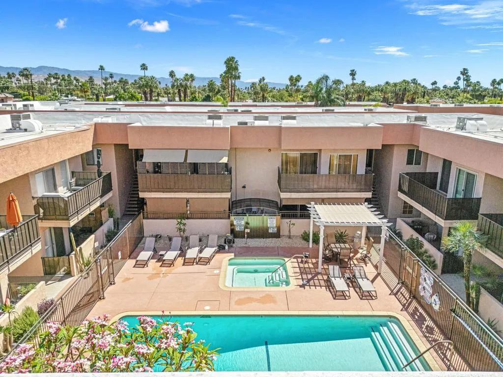 Step into your Palm Springs escape at 400 N Sunrise Way, Unit 136. This bright, ground-floor unit features sleek stone floors, in-unit laundry, and a private patio with direct, steps-away access to the community pool -- perfect for instant resort-style living. Compact and low-maintenance, it's ideally located in central Palm Springs close to dining, shopping, and iconic mid-century attractions. Enjoy shared common areas including landscaped courtyards, outdoor seating and entertaining spaces, and convenient pathways to the pool. Ready to enjoy as a vacation retreat or full-time home.