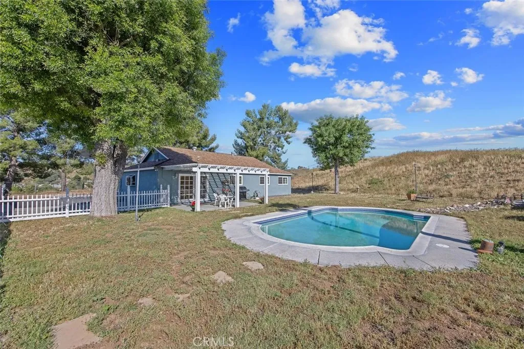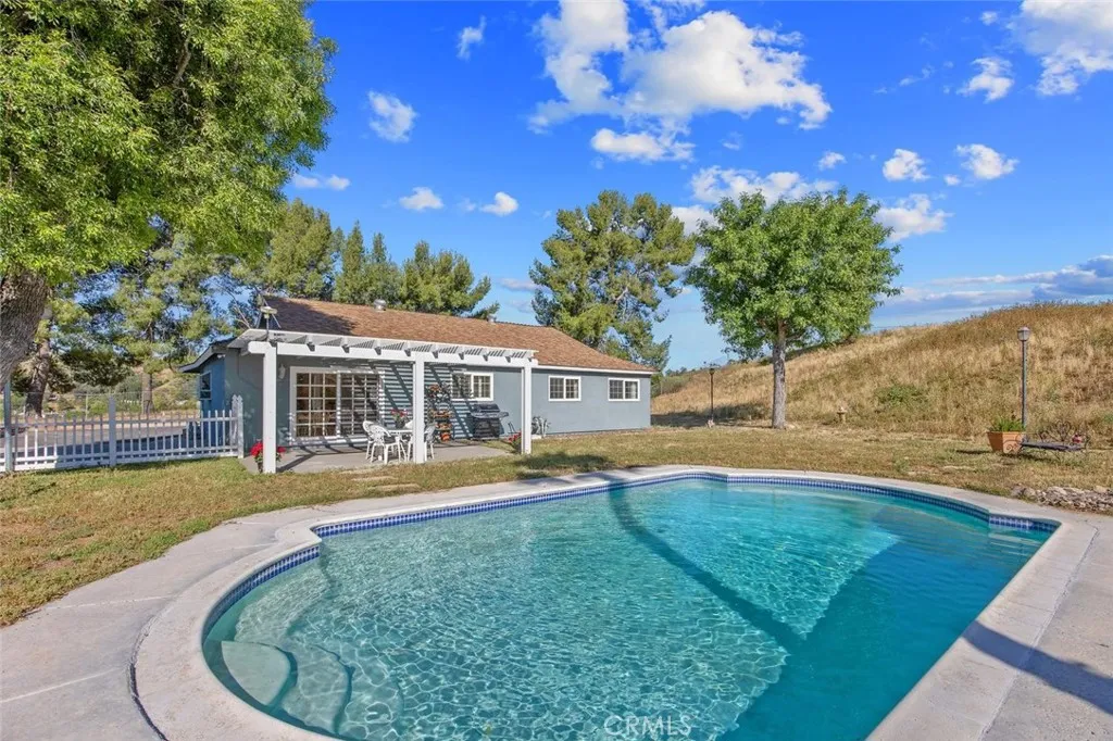 Incredibly Charming 3 bedroom PLUS OFFICE and 2 bath SINGLE STORY POOL HOME located on a fully fenced flag lot perched at the top of a lovely cul-de-sac street in the heart of Saugus with AMAZING VIEWS! The extended family room boasts a classic brick fireplace and opens to the lovely kitchen and dining area which overlook the sparkling swimming pool, covered patio and distant Mountain Views! The bright primary suite and en-suite bath offer plenty of natural light and privacy! There is a separate office off the 2 car attached garage that is perfect for a home gym, office or 4th potential bedroom overlooking the lovely front yard! This Incredible lot is more than 1 acre of mostly usable space that is fully fenced with plenty of room for RV parking and even a ADU! The spacious backyard offers a large pool with tons of room to play and entertain! The extra long gated driveway leads to the convenient 2 car garage! Just a short distance to Rosedell Elementary, Saugus High, and Bouquet Canyon and Golden Valley Road for streamlined freeway access, Central Park, tons of shopping, restaurants and more! NO HOA and NO MELLO ROOS this is a home you will cherish for years to come!