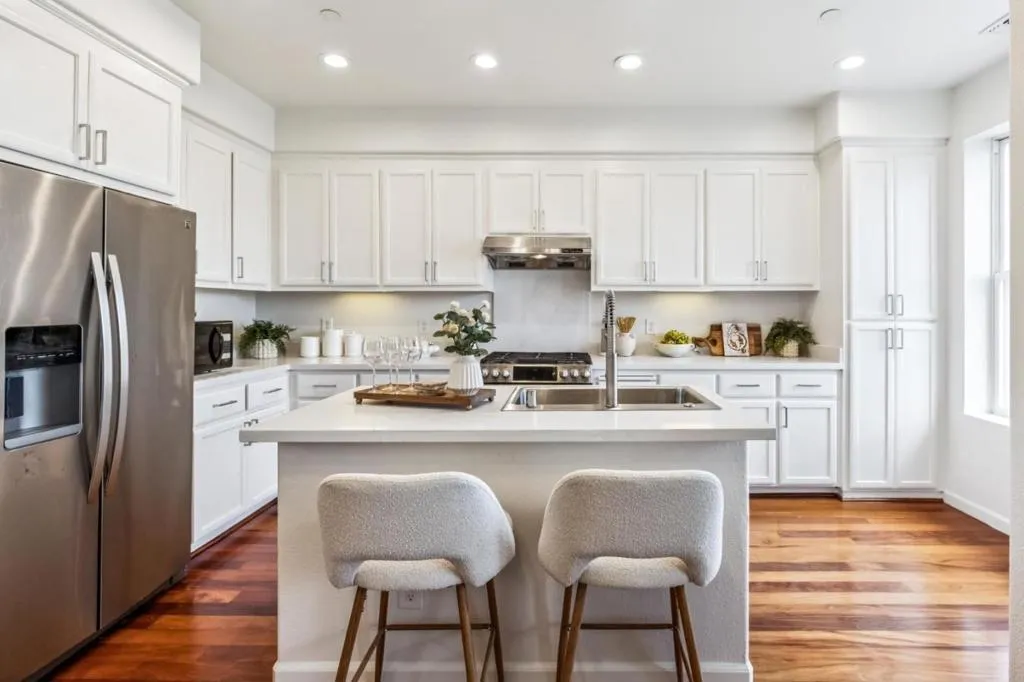 Welcome to 1331 Wayne Way, a beautifully remodeled turnkey residence nestled in Bay Meadows, one of San Mateo's most desirable neighborhoods. This 3-bedroom, 2.5-bath home features high ceilings, recessed lighting, abundant sunlight, fresh paint and beautiful finishes throughout. The main living room offers a spacious area anchored by a fireplace that flows into the family room, dining area, and kitchen. The kitchen highlights quartz countertops, a center island, gas appliances, and modern fixtures. Upstairs, three spacious bedrooms with brand new flooring provide a peaceful retreat, with a custom closet in the primary bedroom. A roomy two-car garage provides additional convenience. Walking distance to Whole Foods, KinderCare, 15+ acres of community parks and playgrounds, and top rated schools including George Hall Elementary and College Park Elementary, this is Bay Meadows living at its best.