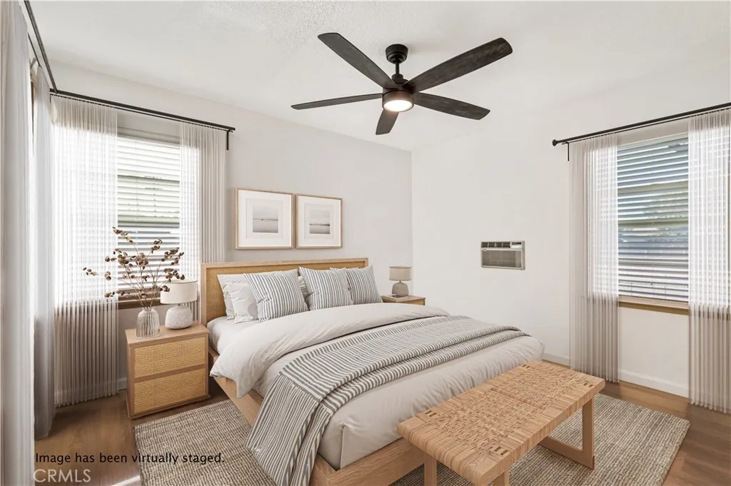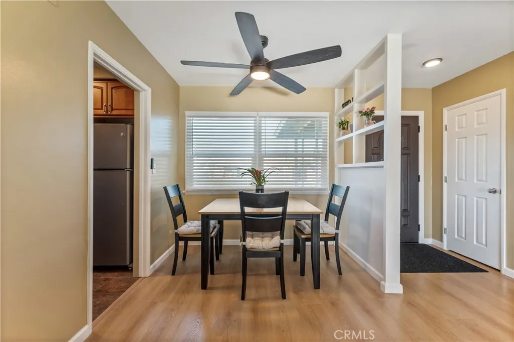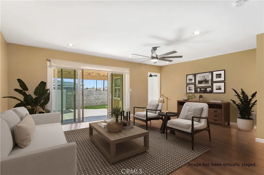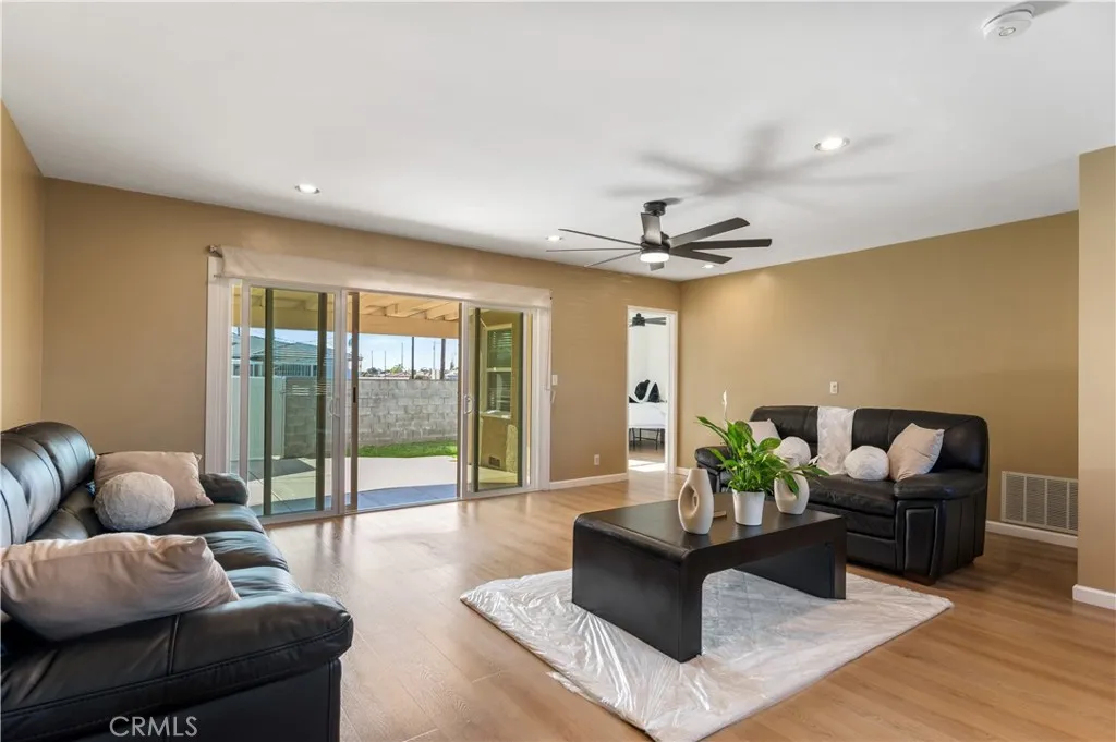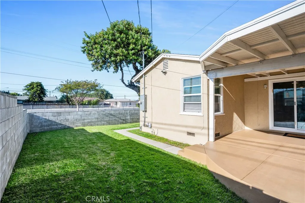 Located in the highly sought-after Hollypark neighborhood of Gardena, this well-maintained 3-bedroom, 2-bath home sits on a spacious corner lot and is filled with natural light throughout. A welcoming front porch leads into the generous main living area, where sliding glass doors open to the backyard, creating an easy indoor-outdoor flow. Recessed lighting and beautiful laminate flooring add a fresh, modern touch. Just off the living room, the dining area is perfectly positioned for everyday meals and effortless entertaining. The kitchen features warm wood cabinetry, granite countertops, and tile flooring, while a separate laundry room offers added convenience and extra storage. The functional floor plan provides privacy and flexibility, with one bedroom located on one wing of the home and two additional bedrooms on the other. One bedroom includes an attached bath with a walk-in shower. Both bathrooms feature an updated vanity with quartz countertops. All bedrooms are equipped with ceiling fans and mini A/C units for added comfort during warmer months. Step outside to the expansive covered patio overlooking a lush grassy yard—ideal for outdoor dining, relaxing in the sun, or enjoying evening gatherings. The detached garage is accessed through the backyard and is complemented by an extra-wide driveway for additional parking. Don’t miss this opportunity to own a lovingly cared-for home at an exceptional value in the South Bay.