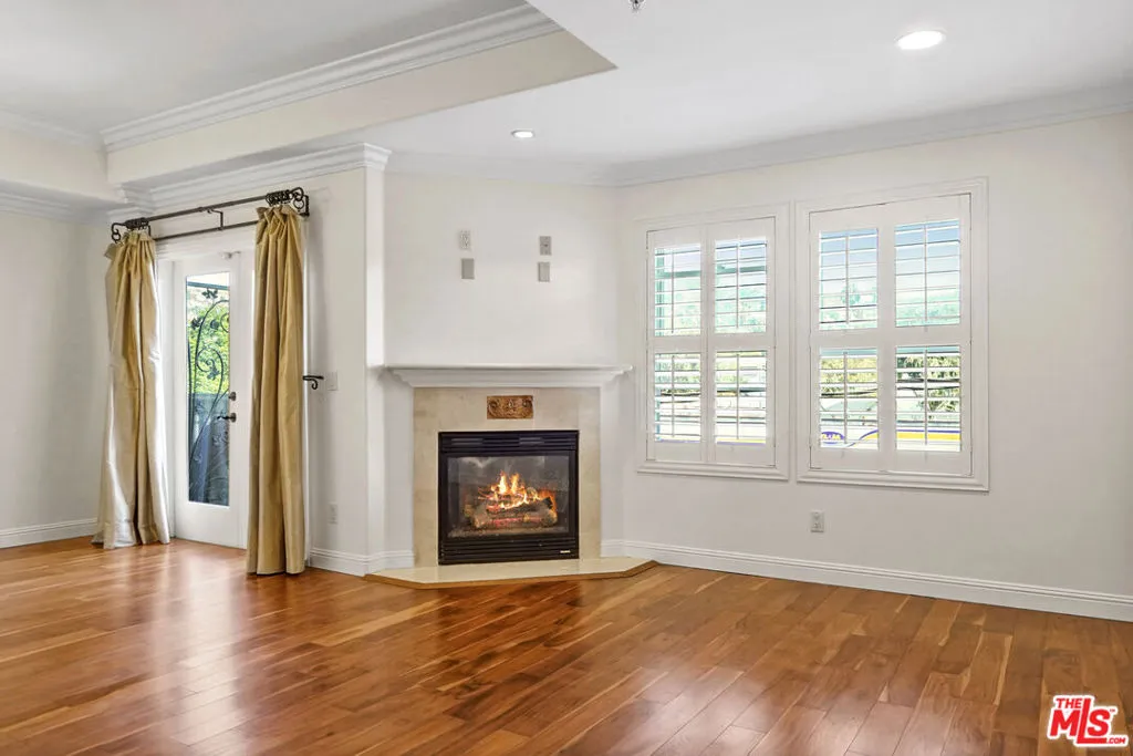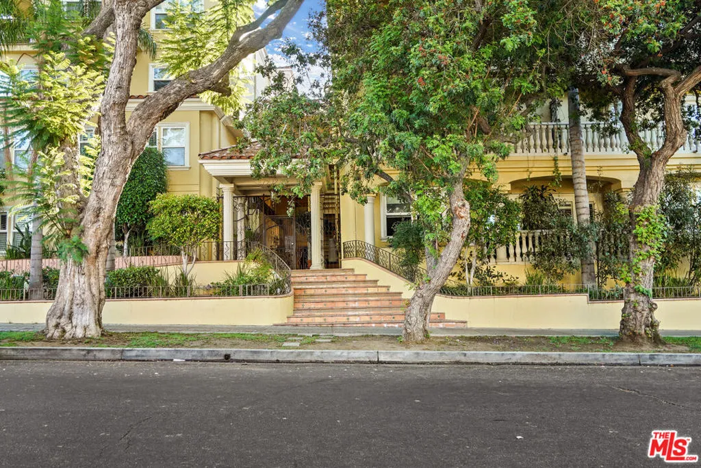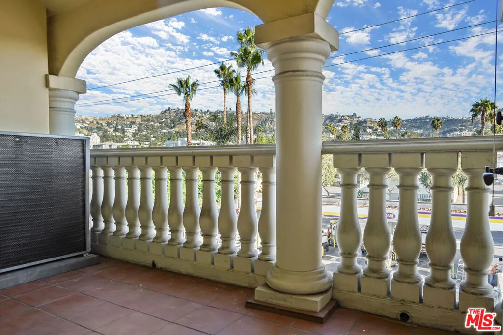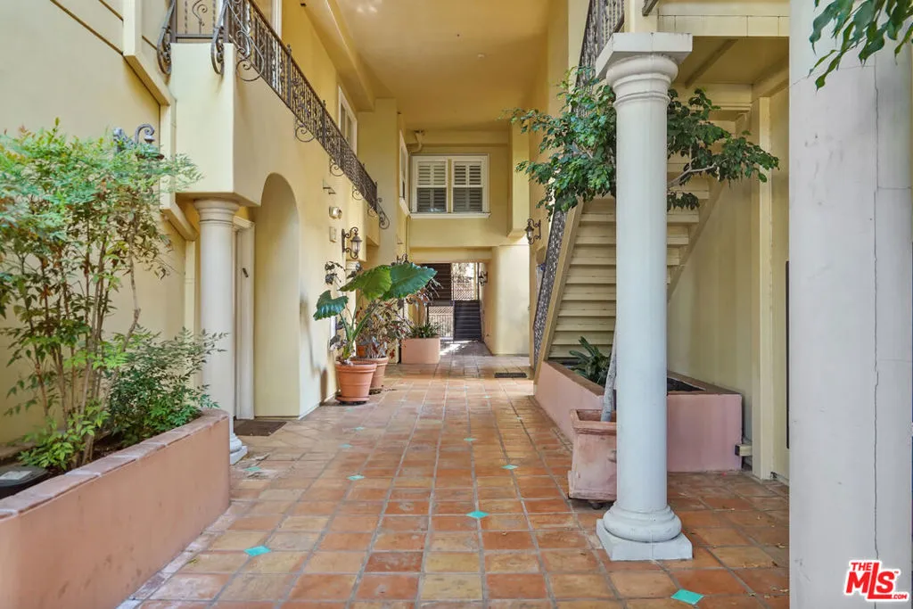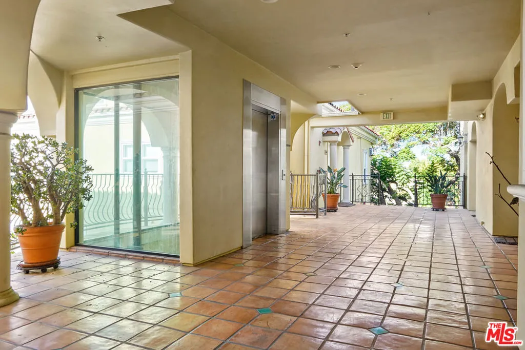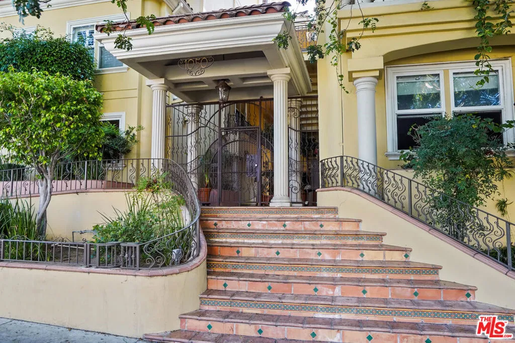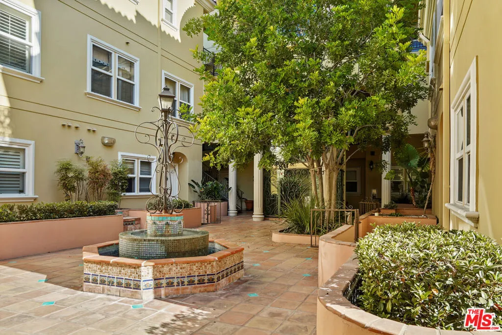 This spacious 2 bed / 3 bath luxury townhome features a fantastic layout with an open floor plan, high ceilings, and spectacular views of the Hollywood Hills and landmarks. The entry level is comprised of a living room with fireplace, dining area with balcony, and a gourmet kitchen with stainless steel appliances and a powder room. Upstairs features split bedroom suites, each with views, European-tiled bathrooms, high pitched ceilings, walk-in closets, as well as a hallway laundry recess. The Mediterranean-style complex showcases a beautiful center courtyard with tiled fountain and lush flower pots. An impressive glass, steel and wrought iron elevator enables easy access from the gated subterranean parking: side-by-side + guest spaces + private storage room. Also includes 2 balcony/patios, central AC/Heat, alarm system, hardwood/carpet flooring, crown molding, and secure entry.