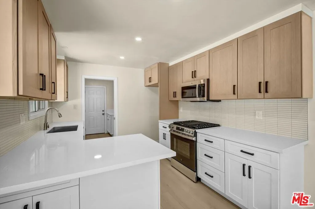 Welcome to this nicely updated Woodland Hills home that sit's on a quiet tree lined street. With lots of natural light and functional floor plan that flows from the entrance foyer to the living room with fire place, dining area is off the kitchen. The fully updated kitchen with new shaker cabinets, quartz countertops, breakfast bar and stainless steel appliances. Off of the living room is a large patio and backyard. Throughout the home you'll find new water proof laminate flooring, can lighting and dual pane windows. The primary bedroom with ensuite. 2 other bedrooms are good sized. The hall bath features a shower over tub and double vanity. The laundry room is just off the kitchen with direct garage accses. Centrally located to schools, stores and transportation. Garage walls are finished. New paint inside and out, new roof, new water heater, Full copper plumbing and HAVC. Landscape is growing in.
