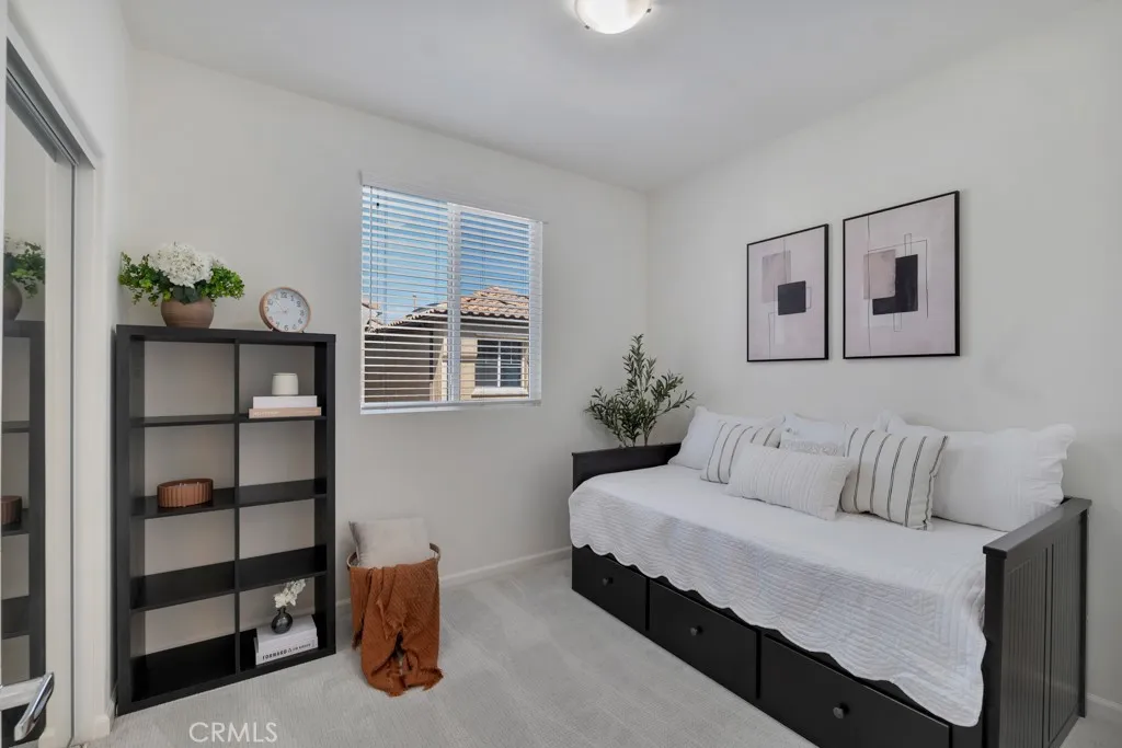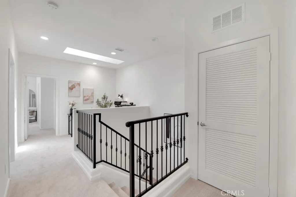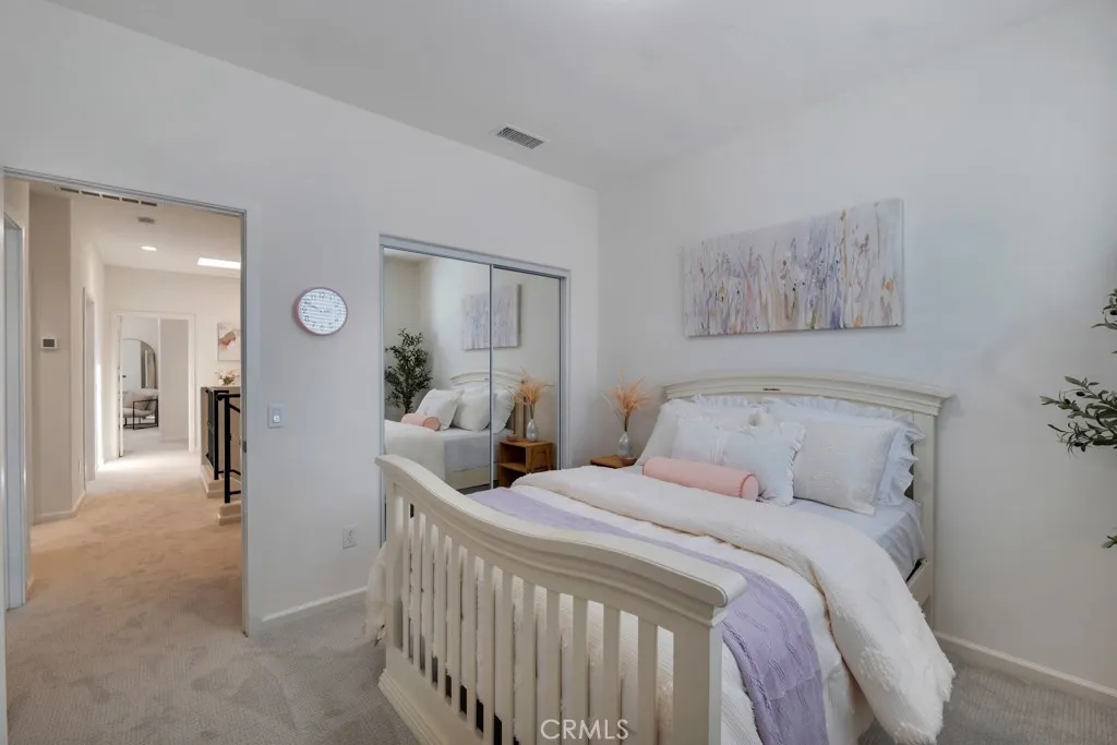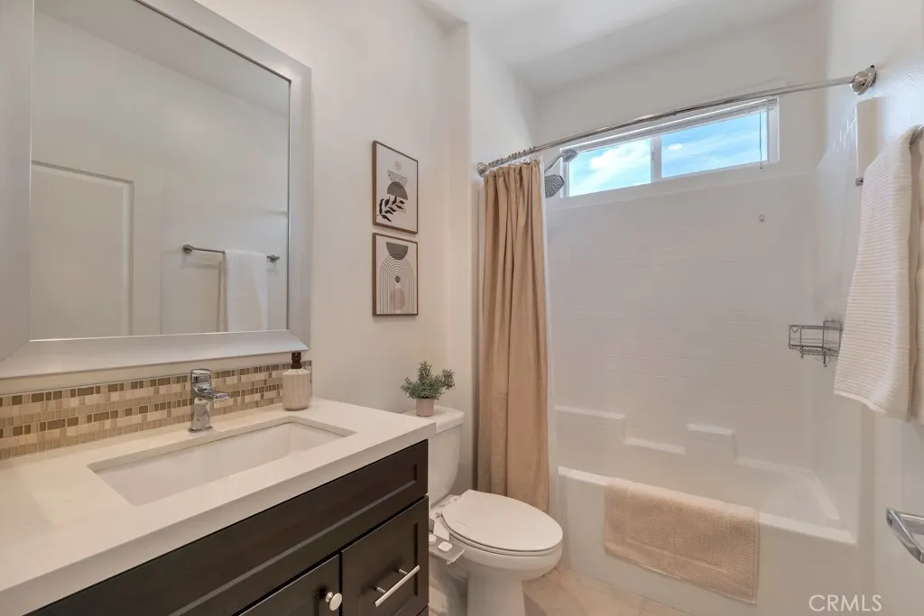 Beautiful 4-bedroom, 2.5-bath home in the sought-after Cabrillo Collection. Freshly updated with new interior paint, gorgeous vinyl plank flooring, and fresh new carpet upstairs, this home offers a bright and functional floor plan with an attached two-car garage. The kitchen features quartz countertops, stainless steel appliances, and a breakfast bar that opens to the dining area, perfect for everyday living and entertaining. Sliding doors lead to a private courtyard with a gazebo, ideal for outdoor dining and summer BBQs. Upstairs, all bedrooms are thoughtfully situated, including a spacious primary suite with a walk-in closet and en-suite bath. A versatile loft provides the perfect space for a home office, playroom, or additional living area, and the conveniently located upstairs laundry room. Additional highlights include completely recessed lighting, dual-pane windows, a tankless water heater, and leased solar. Low HOA and childrens play area all just apart of this wonderful home. Ideally located near shopping, dining, parks, and with easy freeway access.