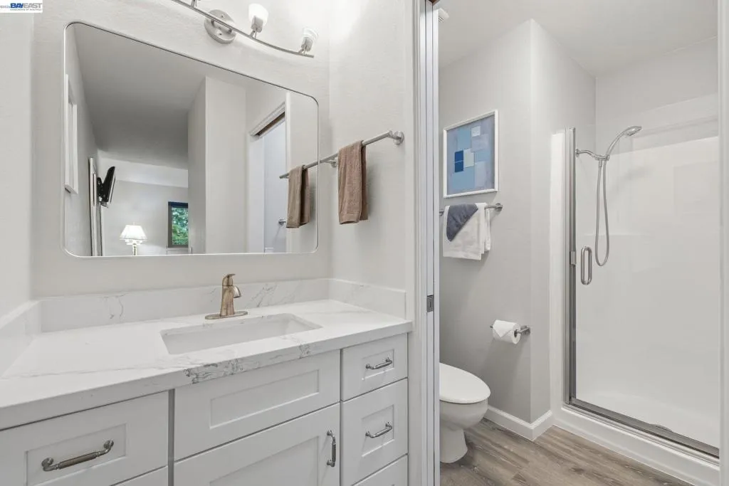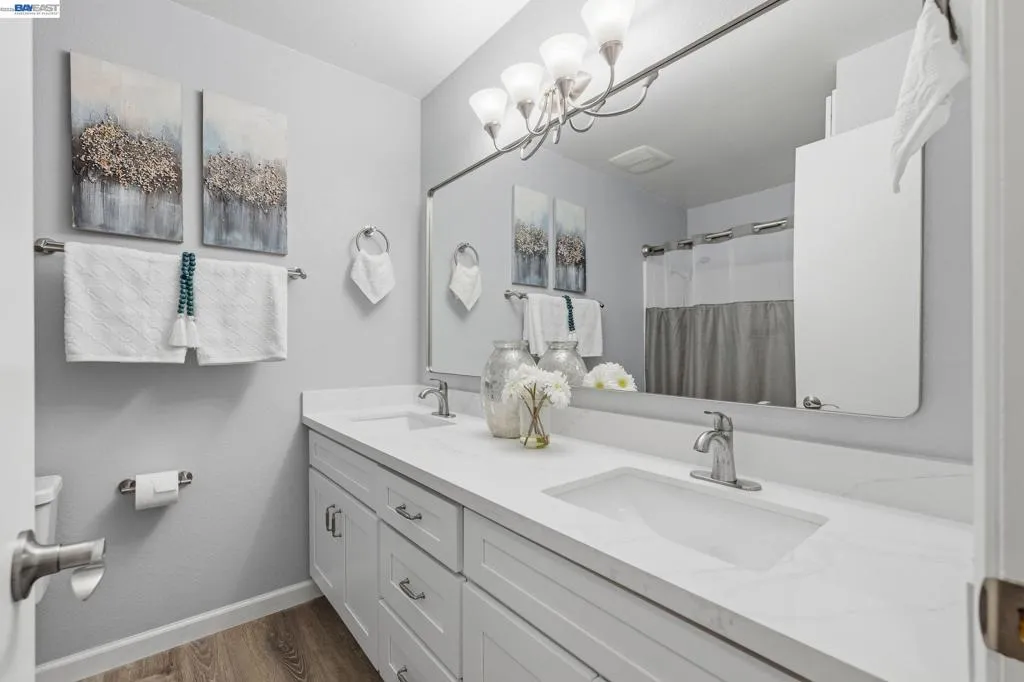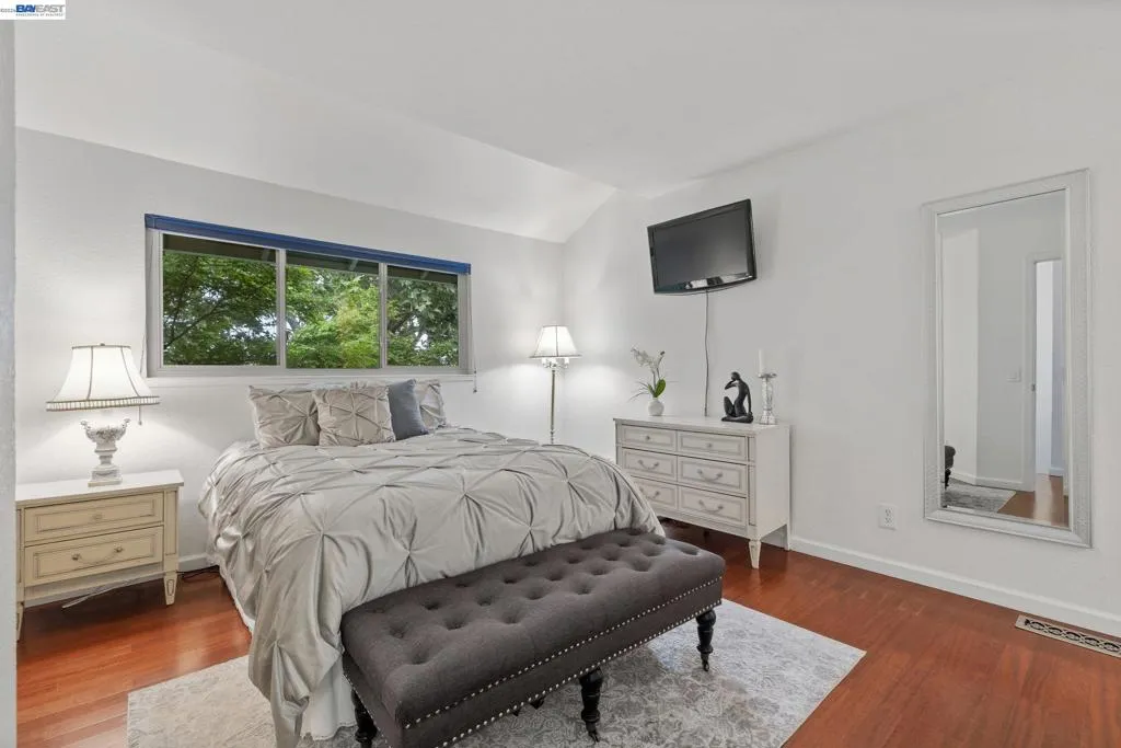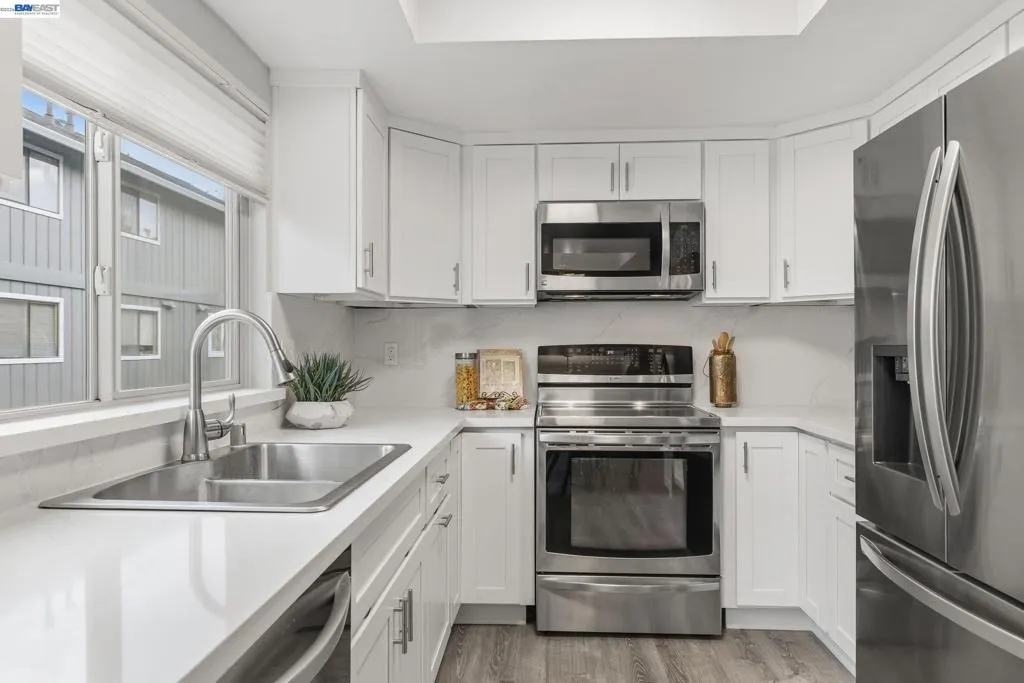 Welcome to this stunning 3-bedroom, 2.5-bath townhome-style condo in Pleasanton's sought-after Chianti Villas community. This beautifully upgraded 1,202 sq ft home is truly move-in ready. The showstopping kitchen features shaker white cabinetry, quartz countertops, full quartz backsplash, new stainless steel appliances (included), new flooring & lighting. The living room showcases a rich granite-surround fireplace with pre-finished cherry hardwood floors flowing through the living room, hallway & all bedrooms. Both bathrooms boast new vanities, mirrors, lighting & flooring — the upstairs hall bath upgraded to a stylish dual-sink vanity. Additional highlights: energy-efficient dual-pane windows & sliders, new furnace (2024), fresh interior paint & a private front patio perfect for morning coffee or BBQs. Attached 2-car garage. HOA covers water, trash & exterior maintenance. Minutes to Downtown Pleasanton, Tawny Park, BART & ACE Train. Top-rated schools: Vintage Hills Elementary, Pleasanton Middle & Amador Valley High!