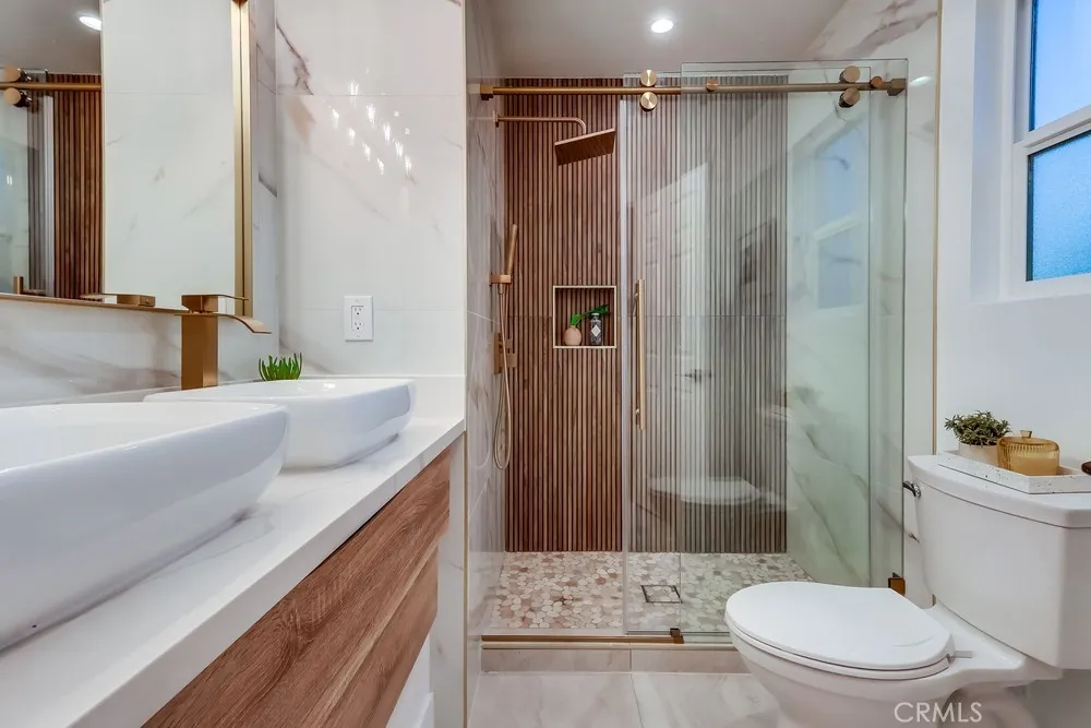 Welcome to an exceptional Spanish-style residence thoughtfully reimagined with modern sophistication, timeless design, and unmatched versatility. Situated in one of Leimert Park’s most desirable pockets, north of MLK Blvd, this fully renovated compound offers the perfect blend of elegance, functionality, and income potential. The main residence spans approximately 2,700 square feet and features 4 bedrooms and 4 bathrooms|500 SQRFT REAR Bonus unit with kitchen and Bath, Showcasing soaring 10-foot ceilings, abundant natural light, and an open, inviting layout. The designer kitchen is the centerpiece of the home, complete with quartz countertops, custom cabinetry, and seamless flow into the formal dining and living areas—ideal for both everyday living and entertaining. The lower level includes a spacious en-suite bedroom with a walk-in closet and a stylish powder room. Upstairs, you’ll find two generously sized guest bedrooms, a beautifully appointed hall bath, and a luxurious primary suite offering comfort and privacy. Every major system has been fully Upgraded, including New Electrical,New Plumbing, New Roof, New HVAC, and New Windows—delivering true turnkey peace of mind. The property also features a Permitted detached approximately 500 SQRFT rear unit complete with its own kitchen and bathroom—perfect for guests, a home office, or additional rental income. Outside, enjoy a private, landscaped yard and a detached 2-car garage, creating a serene retreat in the middle of the city. A rare opportunity to own a fully renovated, move-in-ready compound in one of Los Angeles’ most vibrant and culturally rich neighborhoods