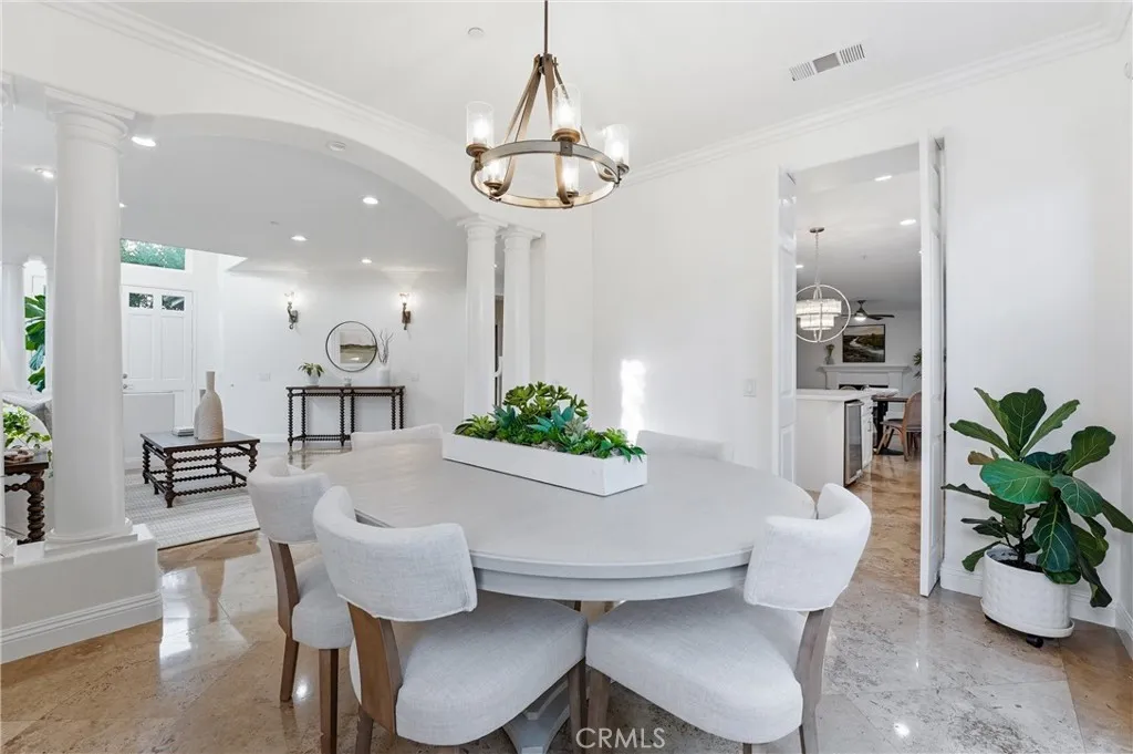 Welcome to this exquisite coastal residence tucked behind the gates of Marblehead. This beautifully appointed home is perfectly positioned on a quiet cul-de-sac with striking curb appeal. From the moment you arrive, this stunning home makes a lasting impression. Thoughtfully designed for both comfort and luxury, the interior showcases a light-filled living room and an elegant formal dining area. The updated chef’s kitchen is beautifully appointed with newer quartz countertops, stainless steel appliances, a wine refrigerator, and a spacious walk-in pantry. It opens seamlessly to a casual dining area and an inviting family room, complete with a cozy fireplace—ideal for everyday living and entertaining. The main level features a convenient bedroom and full bath with updated vanity and fixtures, and a very ample walk-in closet, making this space ideal for multigenerational living or guests. Upstairs, the reimagined primary suite offers a true retreat, highlighted by a custom walk-in closet with motion lighting and a spa-inspired bathroom featuring a stunning walk-in shower and separate soaking tub. The second floor is completed by four ample-sized additional bedrooms, a spacious loft currently acting as a second family room, and a full bathroom, offering flexibility for family, guests, or a home office. Step outside to a serene, private park-like backyard with beautifully designed hardscape and landscape, creating the perfect setting for relaxation or entertaining. Enjoy evenings grilling at the built-in BBQ, or gathering around the inviting fire pit on the patio, highlighted by the Alumawood patio cover and bistro lights for the perfect ambiance. Additional highlights include designer paint, newly installed carpet upstairs, and numerous upgrades throughout. Ideally located within walking distance to schools and just minutes from shopping, a neighborhood community park, sports parks, world-class surfing, and beaches, this home perfectly blends luxury, comfort, and convenience. This is San Clemente, the Spanish Village By the Sea. Welcome to 2421 Via Mero—where your dream home awaits.