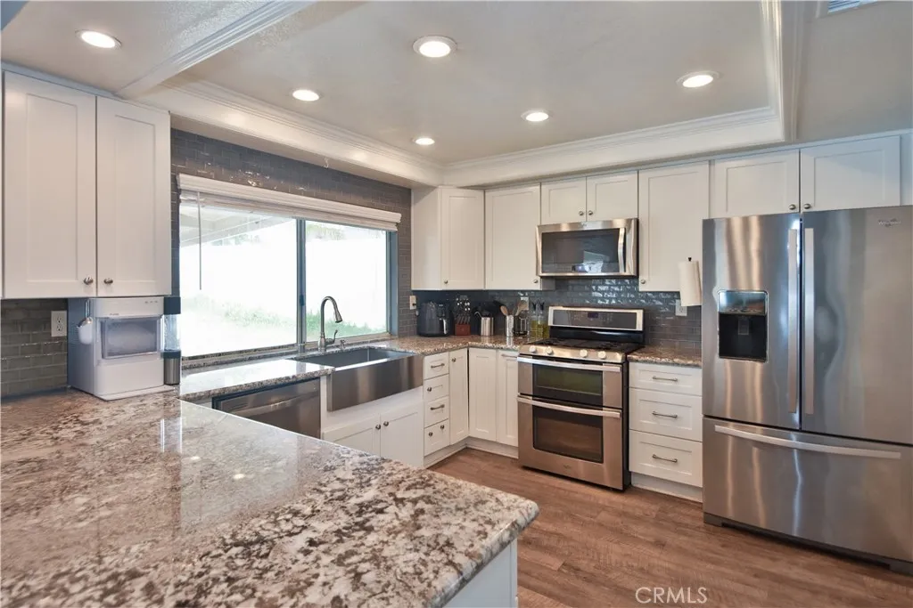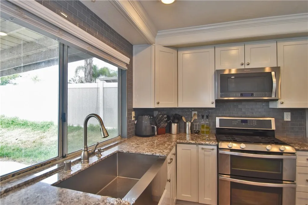 Welcome to this beautifully upgraded home in the highly desirable Orangecrest neighborhood, where comfort, efficiency, and modern style come together seamlessly. This spacious residence features four bedrooms and three full bathrooms. The downstairs level includes one bedroom and one full bathroom, offering excellent convenience and flexibility for guests or anyone preferring first-floor living. The interior showcases upgraded flooring, custom paint, and a stunning fully remodeled kitchen complete with upgraded stainless steel appliances, making it perfect for both everyday living and entertaining. Major system upgrades provide peace of mind, including a newer AC unit, newer heating system, and completely replaced air ductwork. The home is also equipped with a 200-amp upgraded electrical panel and fully paid-off solar panels, offering energy efficiency and long-term savings. Step outside to your private backyard oasis, featuring a low-maintenance saltwater system complimented by a solar heating system for the pool—perfect for year-round enjoyment. The property is further enhanced by upgraded vinyl fencing on two sides and a durable block wall on the rear side for added privacy. With thoughtful upgrades throughout and a prime location in Orangecrest, this home is truly move-in ready and offers the perfect blend of style, comfort, and efficiency.
