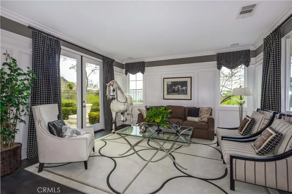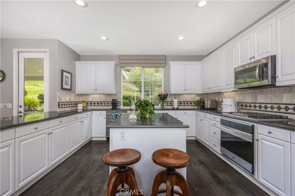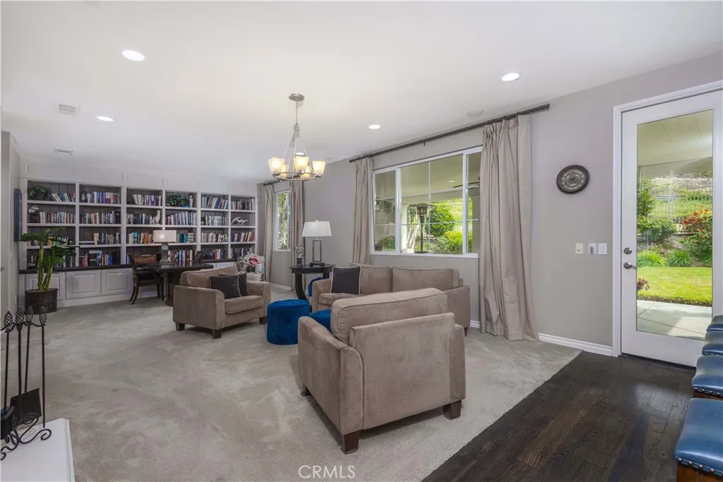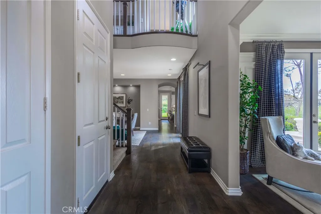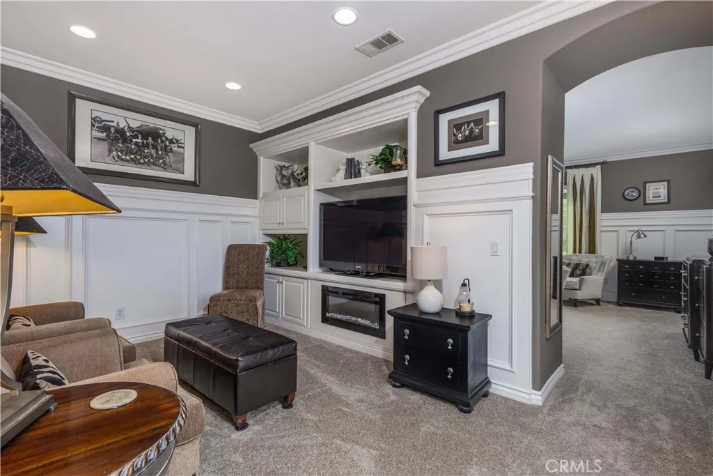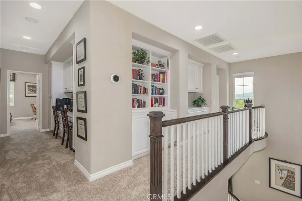 Luxury Living in the Prestigious Guard-Gated Community of Greer Ranch Experience the lifestyle you deserve in this absolutely stunning home, ideally situated at the end of a quiet cul-de-sac on a premium corner lot with no neighbors in front, back or on the right side of the property. Enjoy breathtaking, sweeping panoramic views of the hills and valley, offering both privacy and serenity. From the moment you arrive, you’ll be captivated by the meticulously manicured landscaping and inviting brick walkway leading to a charming front porch—the perfect place to relax with your morning coffee while taking in the views. Originally a Model this exceptional home is filled with high-end upgrades & thoughtful details throughout, including crown molding, wainscoting, custom paint, elegant window treatments, and multiple custom built-ins such as bookcases, desks, and entertainment centers. A multi-room audio system enhances the home’s modern luxury, while brand-new carpeting & rich hardwood flooring complement the impressive 18-foot ceilings in the formal entry. The versatile floor plan includes a downstairs bedroom with a full bathroom nearby—ideal for guests or multi-generational living. The spacious gourmet kitchen features granite countertops with a full backsplash, stainless steel appliances, & an abundance of cabinetry, making it perfect for both everyday living and entertaining. The expansive owner’s suite is a true retreat, complete with a private sitting area and custom built-in entertainment center—perfect for unwinding at the end of the day. The en-suite bathroom offers a walk-in shower, dual vanities, & a large walk-in closet. Upstairs, you’ll find 4 additional generously sized bedrooms, including one with its own private bathroom. A conveniently located upstairs laundry room includes built-in storage and a utility sink. Step outside to your tranquil backyard oasis, where you’ll enjoy stunning sunset views over the hills. The space is designed for relaxation and entertaining, featuring a custom-covered patio with ceiling fan and a beautiful brick courtyard centered around a soothing fountain. Enjoy resort-style amenities, including an Olympic-size pool, kids pool, tot lots, clubhouse, and scenic walking trails. Convenient access to the 215 & 15 freeways, and just minutes from shopping, dining, Temecula wineries, and the Promenade Mall—all within the highly acclaimed Murrieta School District. This is luxury living at its finest!