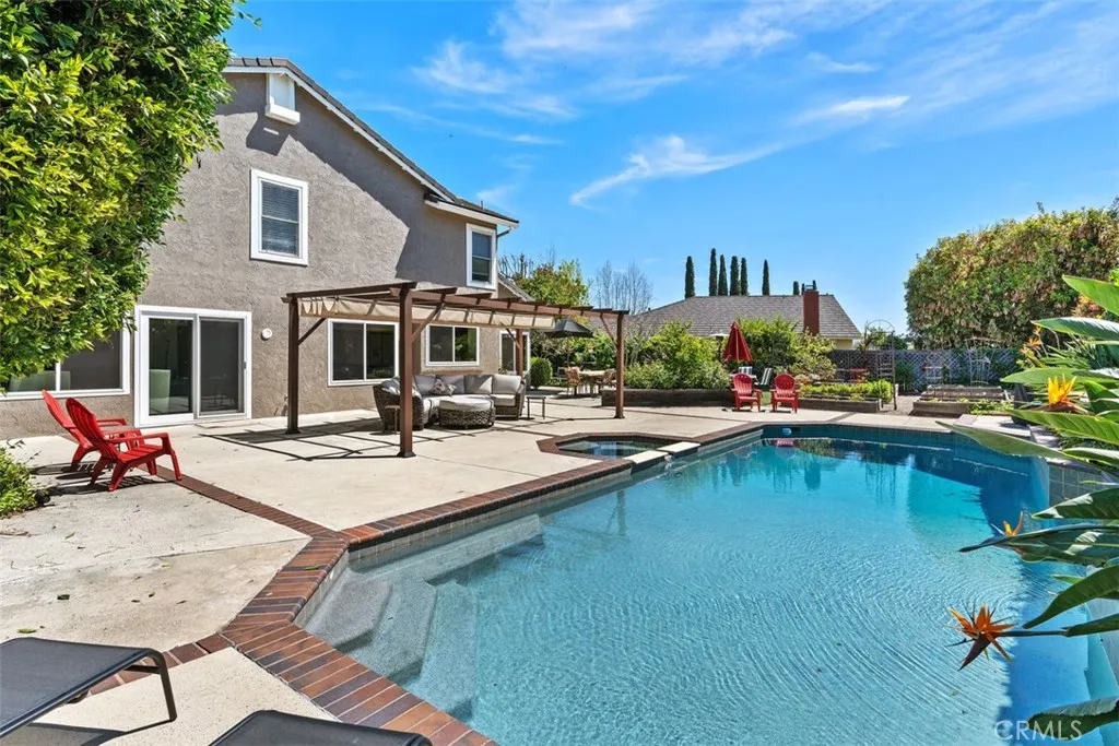 FULLY FURNISHED RENTAL AVAILABLE! Beautifully remodeled light and bright home! This stunning 4 bedroom 3 bathroom home has an open floor plan and abundant windows with amazing serene and landscaped yard with large pool and spa. It features a Chefs kitchen with granite counters, recessed lighting and high end stainless steel appliances. The entry opens to the living room and dining room spaces. Off the kitchen is a breakfast nook & opens to the family room. Downstairs there is also a main floor bedroom and bathroom. Upstairs are three bedrooms, one of which is a spacious primary suite with a gorgeous spa like bathroom. The two additional upstairs bedrooms share a full bath off the hallway. Indoor/outdoor living on a large private lot perfect for al fresco dining with mature trees and hedges surrounding you plus a raised bed for a garden of your choice! Saddleback Mountain views from the front yard! Located in 24 hour gated Rolling Hills with a private 5 acre park with pools, tennis courts, pickle ball courts, basketball courts, Sand Volleyball Courts and walking/biking trails. This gated community is close to freeways, restaurants, shopping, and beaches. Also close to the 73 without the noise. A must see!