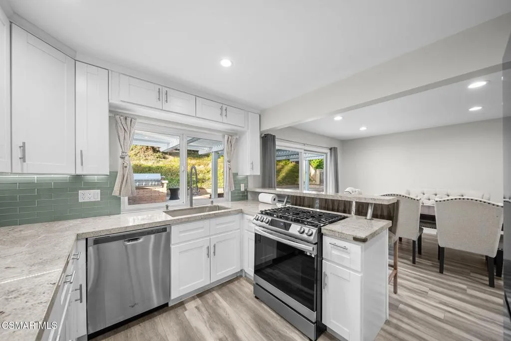 Welcome to 30623 Lakefront Drive - Experience this gorgeous 4 bedroom 2 bath nearly 1800 square foot home. Fabulous location across the street from the lake and on a generous sized traditional lot with newer fire pit and grill built in 2021! The backyard beautification in 2024 includes a dropped irrigation system, ficus, and lantanas. Enjoy a mature and delicious producing fig tree and baby lemon tree! This versatile floor plan is light and bright and features vaulted ceilings, grey laminate floors throughout, two bedrooms upstairs and 2 bedrooms downstairs. The remodeled kitchen with breakfast counter bar and bathrooms blend seamlessly with the home's open floor plan. Loft / office area on second floor, new Smart fridge in 2024, Smart Stove / fryer in 2023, new water heater in 2023, New AC Unit and condenser in 2025. Enjoy the ultimate Agoura Hills lifestyle with Lake rights perfect for boating, fishing, kayaking or stand-up paddle boarding. Lake Lindero Membership includes use of the junior sized Olympic Pool, 4 tennis courts, pickleball, optional 9 hole golf course with range, creating a true resort-like setting. Located just minutes from beaches, upscale shopping , restaurants, Las Virgenes Schools, hiking, trails and parks. This enchanting home offers the perfect blend of luxury, convenience, comfort and a sense of community!