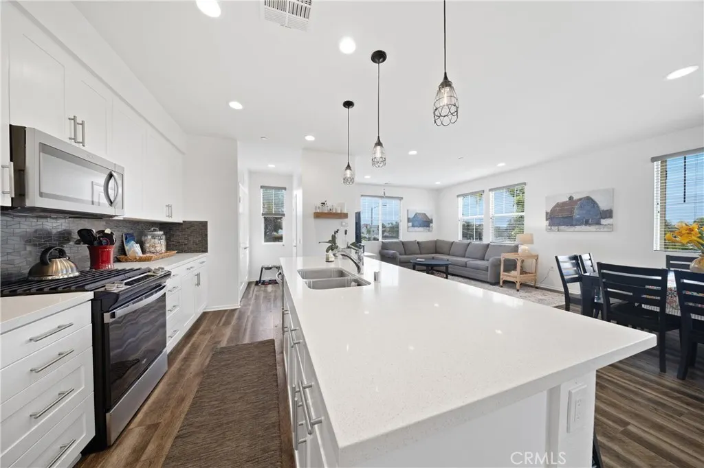 Step into coastal living at its finest in this vibrant, move-in-ready end-unit townhome in the gated Pacific Ridge community of Oceanside! Featuring 4 bedrooms (including a first-floor suite), 3.5 bathrooms, 1,824 sqft, serene mountain views, one of the largest private patios in the neighborhood, and a prime location directly across from multiple guest parking stalls and a grassy BBQ area—this home delivers space, style, and standout indoor-outdoor living from the very first glance. Built in 2017, this stunning residence is filled with natural light and thoughtfully upgraded with modern vinyl flooring, brand new paint, and plush new carpet throughout. The open-concept layout flows effortlessly into a chef-inspired gourmet kitchen, complete with brand-new stainless-steel Whirlpool appliances, a sleek backsplash, walk-in pantry, elegant pendant lighting, and an expansive island with barstool seating—perfect for hosting and everyday living alike. Upstairs, unwind in the tranquil primary suite featuring a dual-sink ensuite bathroom and a spacious walk-in closet. A private balcony offers a peaceful escape, while the oversized two-car garage provides ample storage for all your needs. Step outside to your beautifully designed patio with pavers and turf—ideal for relaxing, entertaining, or soaking in the Southern California sunshine. Perfectly positioned within the community, this end-unit enjoys added privacy while being just steps from convenient guest parking and a lush BBQ and picnic area—making hosting friends and family effortless. Pacific Ridge offers a lifestyle as appealing as the home itself, with multiple playgrounds, open green spaces, and resort-style amenities including a sparkling pool and jacuzzi, all just minutes from the coastline, shopping, dining, and entertainment. This is more than a home—it’s your personal slice of coastal paradise. Come experience it before someone else calls it theirs!