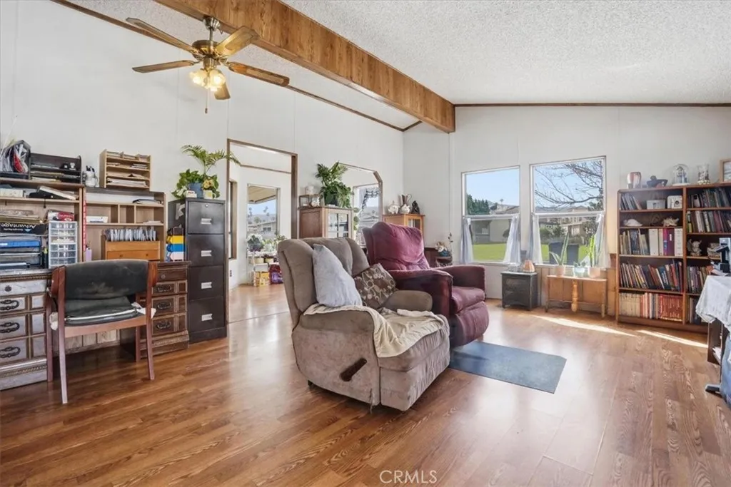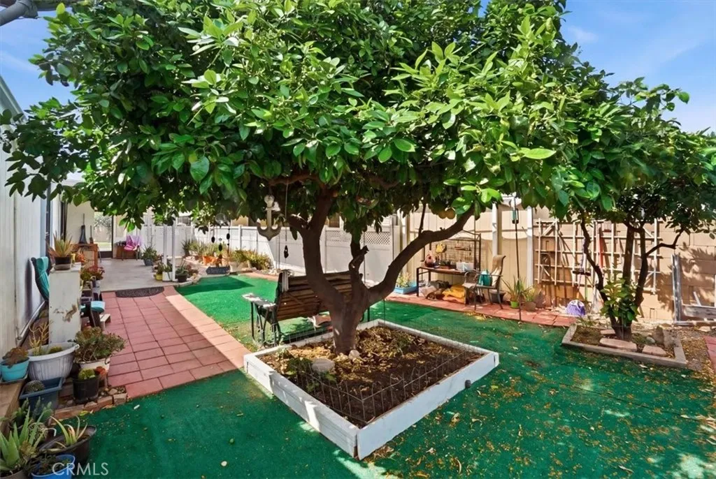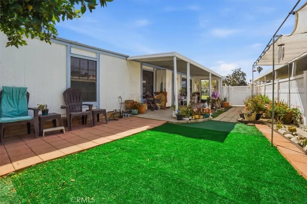 Welcome to the incredible 55+ community of Corona Palms. This 2 bedroom, 2 bathroom, 1344 square foot unit is located in a prime location of the community on a large lot with easy guest parking. Step into an open floor plan with a dining room, family room, kitchen nook and functional kitchen. The home includes 2 large bedrooms, 2 full bathrooms and a large individual laundry room. The primary suite has ample closet space and the bathroom includes a separate tub and shower and vanity. Relax under the covered patio while looking at the spacious yard with several fruit trees to enjoy. Covered parking and a shed complete this lovely home. The AC is oversized and newer and the roof has also been replaced. All of this in an active gated community with access to a swimming pool, spa, billiards, card room and clubhouse with a kitchen. Enjoy the convenience of easy access to the 15 and 91 freeways and tons of shopping and restaurants.