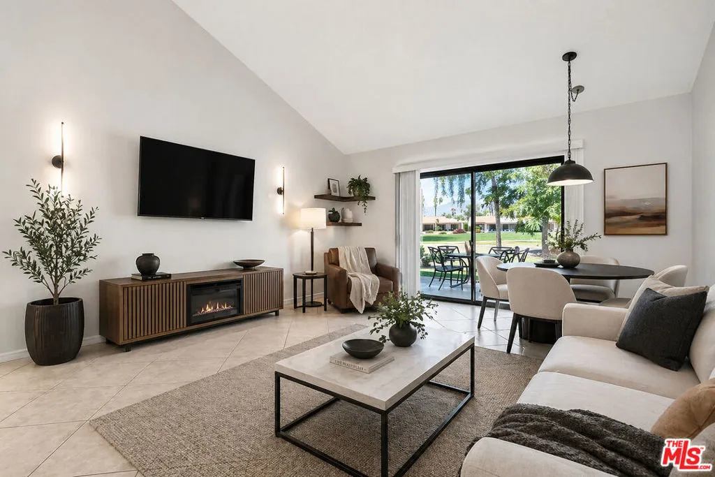 Perfectly positioned within the gates of Palm Desert Resort Country Club, this 2-bedroom, 1.5-bath condo offers sweeping golf and mountain views. Ideally located for both personal use and investment, short-term rentals are permitted making it a prime opportunity for Airbnb or festival-season income. Inside, vaulted ceilings and an open-concept kitchen create a bright, airy flow leading to a private patio overlooking the 11th fairway. Residents enjoy resort-style living with access to a Joe Mulleneaux-designed 18-hole golf course, 20 heated pools and spas, 28 pickleball courts, and a newly renovated 42,000-square-foot clubhouse with a full-service restaurant and fitness center. This home is also just minutes away from the Artisan Club at Cotino, the first "Story living by Disney" community. This nearby destination brings Disney's legendary storytelling and service to life through a waterfront clubhouse, the "Incredibles"-inspired Parr House, and unique community experiences curated by Disney Cast Members. Offered with the option to purchase furniture separately, this condo is ready for a seamless transition. For those interested in the investment potential, 2025 Airbnb financial records are available upon request. This is desert living, elevated.