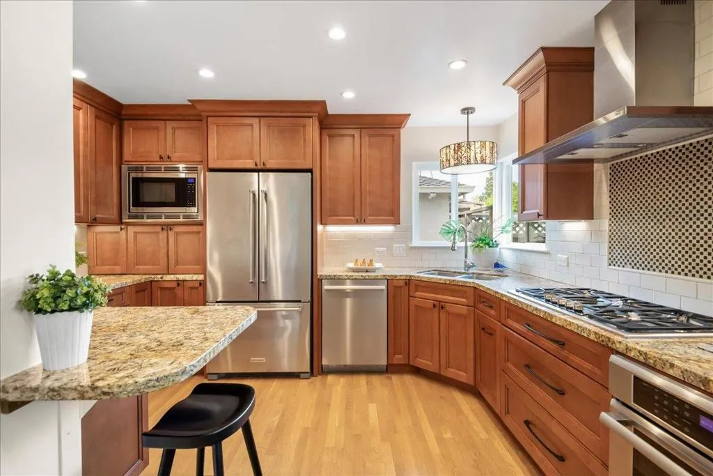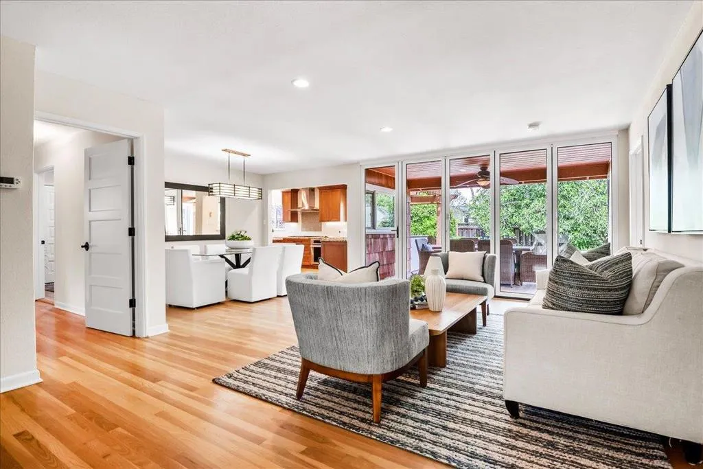 Located in one of San Jose's most sought-after neighborhoods, Willow Glen is known for its tree-lined streets, strong sense of community, and vibrant downtown just one mile away. This stunningly remodeled home showcases a open floor plan designed for modern living and effortless entertaining. A custom front door opens to an impressive foyer and formal living area featuring gleaming hardwood floors and abundant natural light. A dramatic Nana wall folding glass door seamlessly connects indoor and outdoor spaces, while the living room flows directly into the and dining area ideal for gatherings. Updated kitchen offers quality cabinetry, granite countertops, and high-end appliances. Spacious primary suite includes an en-suite bath and large walk-in closet. Additional features include double-pane windows, newer furnace and A/C, tankless water heater, solid core five-panel doors, rec lighting, designer fixtures, whole house fan. A polished, move-in ready home in a premier location.