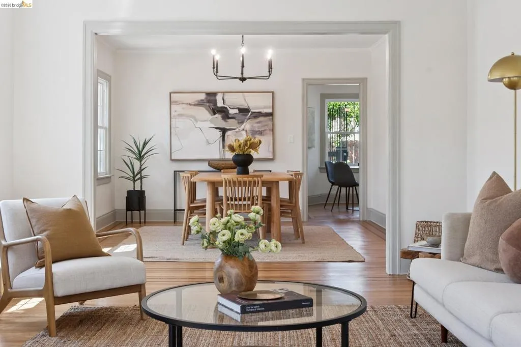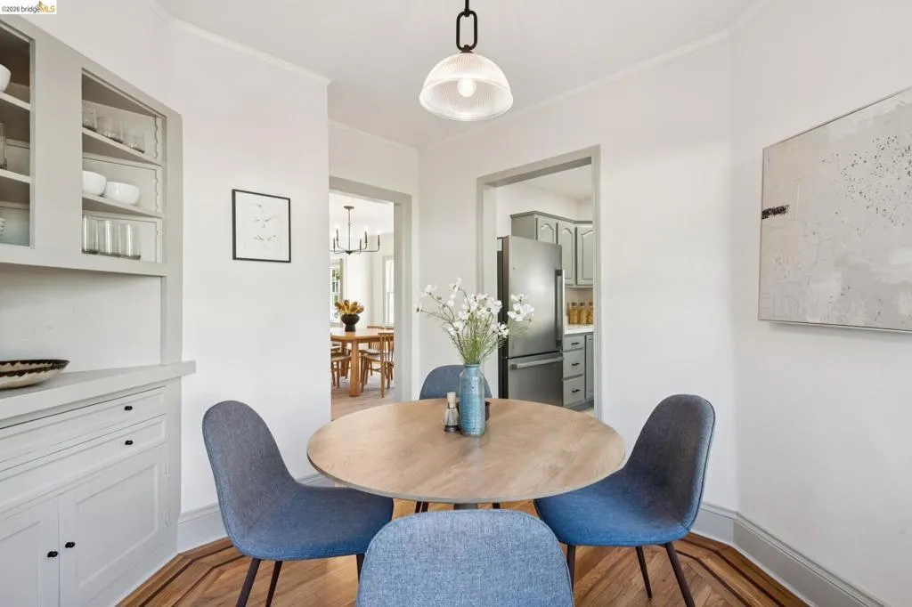 Welcome to 3215 Fruitvale Ave, built in 1925 and brimming with character. The spacious living room is bathed in natural light, anchored by the stunning original tile fireplace and beautiful arched front windows. The generous dining room and breakfast room feature original built-in cabinets. The refreshed kitchen has been thoughtfully updated with new countertops and appliances. Off the kitchen, you’ll find a laundry room and convenient access to the backyard. A hallway off the dining room leads to two sizable bedrooms and an updated bathroom. Outside, the detached unit is a blank canvas - imagine it as your dream office, gym, art studio, or additional storage. There’s even more potential in the attic, ready for your vision. The backyard is a retreat with vibrant greenery, perfect for entertaining. To top it all off, the location is unbeatable- nestled near some of the area’s most beloved spots and minutes from Dimond Park. Plus, with easy freeway access, your commute is a breeze.