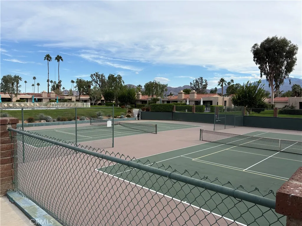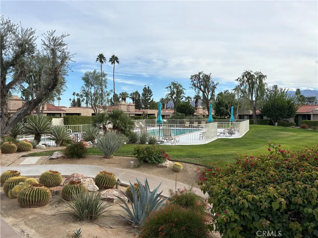 Single Story End unit 3 bedroom, 2 bath condo located in highly desirable Monterey Sands community. Open floor plan, living room with beamed high ceiling and fireplace, dining area and kitchen that opens to private lanai that allows for indoor outdoor living. Large primary suite with walk in closet. Master bath with dual sinks, separate shower and bath. 2 car attached garage with tons of storage. Community offers 2 pools/spas, tennis courts and a meeting room. Ideally situated within walking distance to College of the Desert and close to all the best shopping, dining, and attractions the desert has to offer.