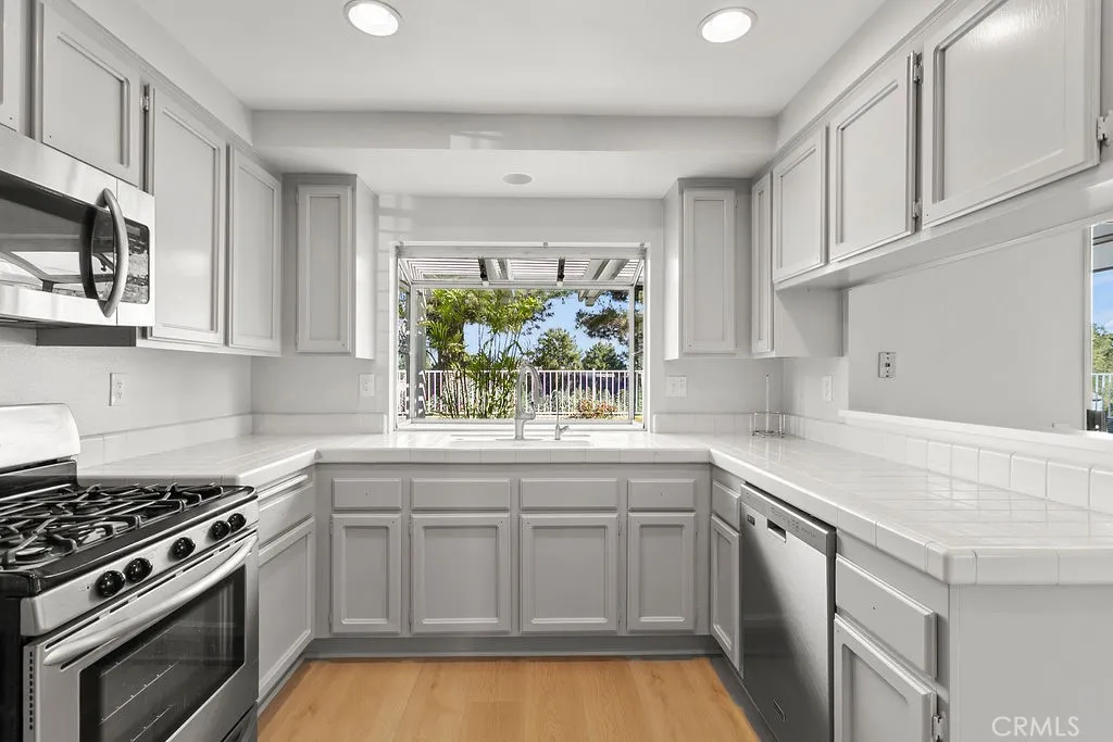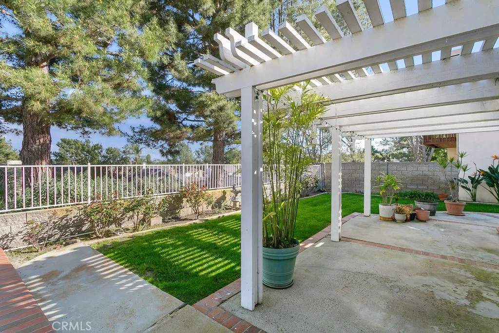 Available May 26th, this updated three-bedroom, three-bathroom home in the Glenwood Terrace community of Aliso Viejo features a fresh interior with new vinyl plank flooring, plush upstairs carpeting, and a neutral paint palette throughout. The functional two-story layout includes a convenient main-floor bedroom with built-ins and a full guest bathroom, alongside a bright kitchen with freshly painted cabinetry and modern appliances. The living and dining areas flow seamlessly to a private, wrap-around backyard with a lush lawn and a patio covered by a charming pergola, ideal for outdoor dining. Upstairs, the spacious primary suite offers a walk-in closet and private en-suite, while the third bedroom also features its own private bathroom for added seclusion. Complete with an attached two-car garage and an inside laundry area, this home provides easy access to local parks, schools, and the Aliso Viejo Town Center. Garage-parking only; no overnight guest-spot access for residents.