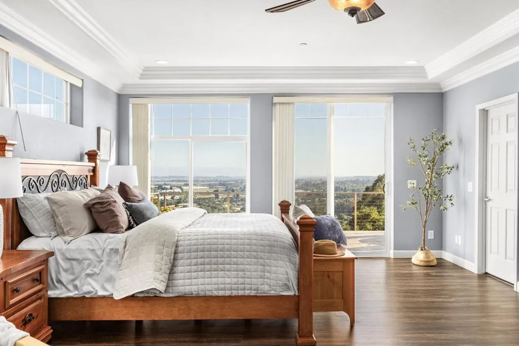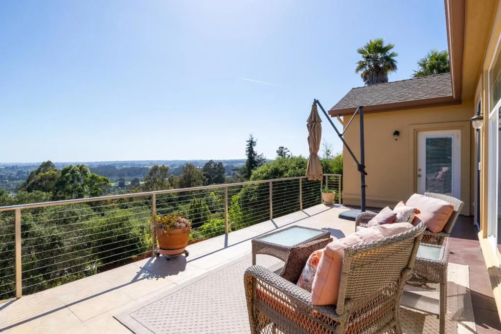 Set within the gated Spring Hills community, this elevated hilltop property captures sweeping, unobstructed views across Monterey Bay and the surrounding coastline. The outlook becomes a natural extension of the home, visible from the main living areas, primary suite, and outdoor spaces. The open floor plan is filled with natural light and anchored by large scenic view windows. The chefs kitchen features stainless appliances, bar seating, and seamless flow into the dining and living areas, all positioned to take advantage of the views. Step outside to an expansive entertainment deck, ideal for hosting or enjoying sunsets over the bay. The main residence offers 4 bedrooms and 3 baths, along with a separate legal unit with its own entrance, well suited for multi-generational living or added flexibility. Interior features include LVP flooring, crown molding, and multiple gas fireplaces. Additional highlights include a dedicated billiards space, wet bar, oversized two-car garage, and a spacious primary suite with walk-in closets and a soaking tub. Conveniently located near vineyards, golf, and coastal amenities.