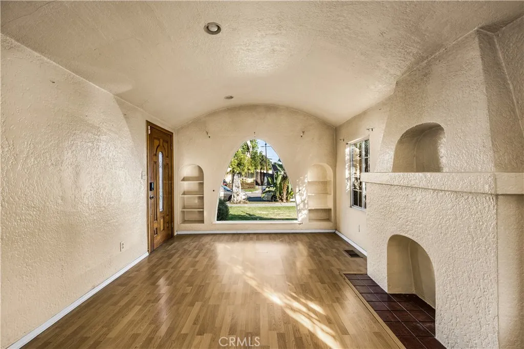 Charming Spanish-style home located in a desirable South Gate neighborhood, offering timeless character, inviting curb appeal, and a warm, welcoming atmosphere from the moment you arrive! This inviting residence features a spacious living room with arched entryways and coved ceilings. Large windows throughout provide abundant natural light, creating a bright and airy atmosphere. The home offers a well-sized kitchen with ample cabinetry and countertop space, perfect for everyday living and entertaining. Generously sized bedrooms and a functional layout provide comfort and flexibility. The expansive backyard offers a great opportunity for outdoor living and future customization. With a large open space, it’s ideal for entertaining, gardening, or creating your own private retreat. The long driveway leads to a detached garage, providing ample parking and potential for additional uses such as a workshop or possible ADU (buyer to verify). The size and layout of the lot provide flexibility for future expansion while still maintaining plenty of usable yard space. Conveniently located near schools, shopping, dining, and major transportation routes, this home offers both comfort and convenience. Don’t miss this great opportunity to own a character-filled home with tons of potential!