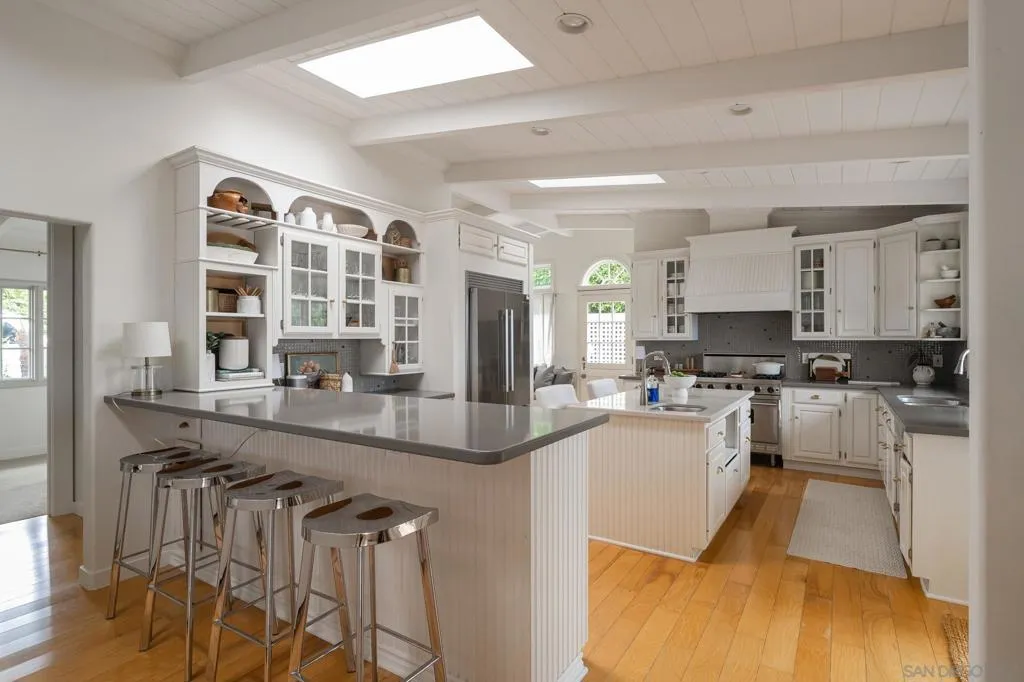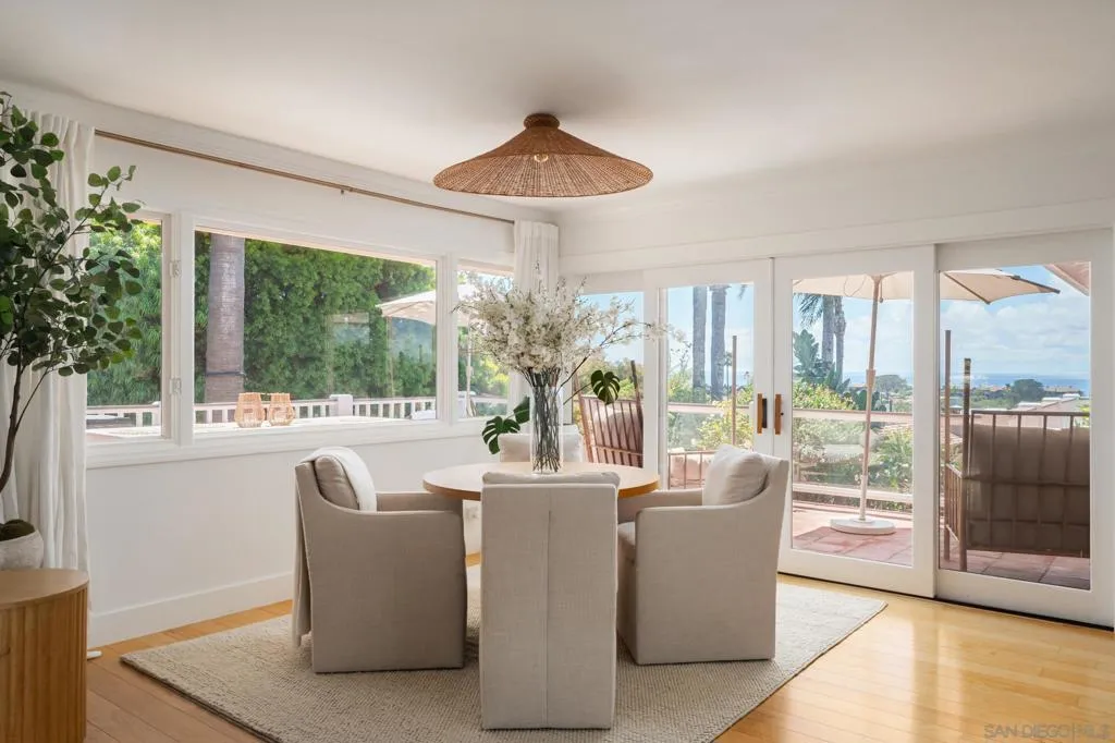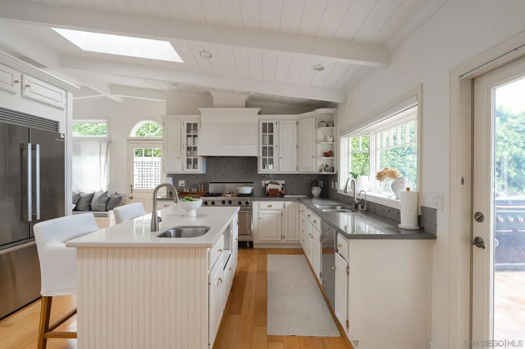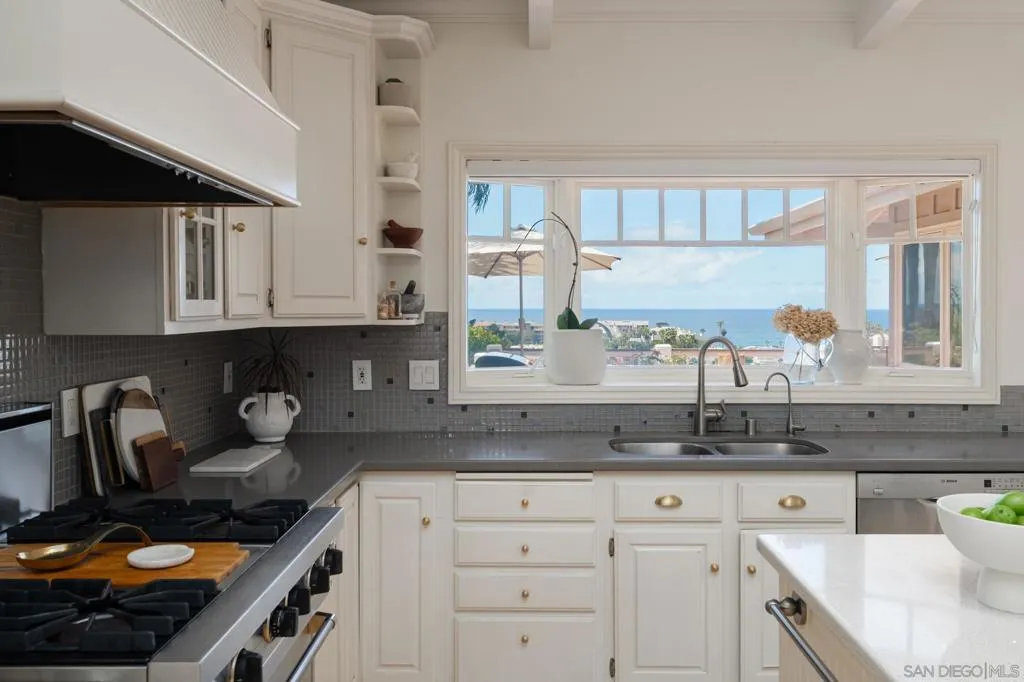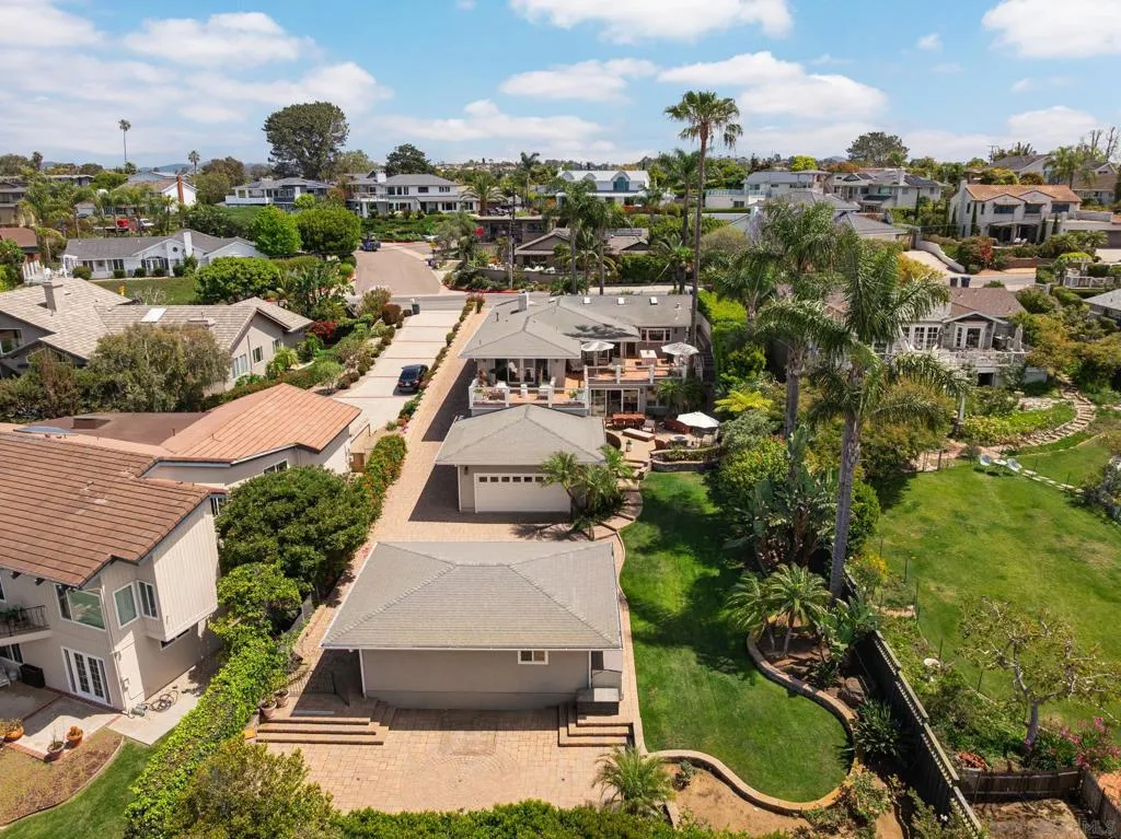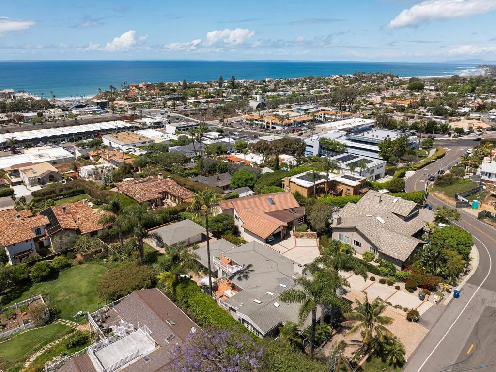 Set on an expansive, lushly landscaped .32 acre lot, on one of the most sought-after streets in North County, this timeless Cape Cod–inspired residence offers a rare combination of privacy, charm, and sweeping, protected ocean views from nearly every room. Perfectly positioned to capture the natural beauty of the coastline, the home is filled with soft coastal light and designed for effortless indoor-outdoor living. A welcoming entry opens to the main living level, where oversized windows, French and sliding doors, frame endless ocean vistas. The thoughtfully designed gourmet kitchen blends classic style with functionality, featuring stone countertops, custom cabinetry, top of the line appliances, bar seating, and an inviting breakfast nook. The kitchen flows seamlessly into the dining, family and living rooms, all of which open to generous wraparound ocean view decks—creating an ideal setting for entertaining, sunset dining, or quiet mornings overlooking the Pacific. The flexible floor plan offers a bedroom and dedicated office on the entry level, perfect for guests or working from home, while the lower level hosts three spacious bedrooms. The primary suite is a true retreat, offering serene ocean views from both the bedroom and the spa-inspired bath, complete with a soaking tub positioned to take in the horizon—an everyday luxury that feels like a private getaway. Additional highlights include a two-car attached garage plus a rare two-car detached garage, offering exceptional flexibility for future use. See supplement... Additional highlights include a two-car attached garage plus a rare two-car detached garage, offering exceptional flexibility for future use. The detached structure presents a compelling opportunity for a potential ADU or guest residence, studio, or expanded living space (buyer to verify). The generous lot also provides room for a pool, further enhancing the property’s potential as a true coastal compound. Opportunities like this are seldom available in such a premier location. Surrounded by mature greenery and set on a deep lot, the property offers a sense of tranquility and space rarely found this close to the coast. Just a short stroll away, enjoy the vibrant shops, cafes, and design showrooms of the Cedros Design District, as well as easy access to the sand and surf at Fletcher Cove. Blending timeless architecture, breathtaking views, and exceptional expansion potential, this is a rare opportunity to own one of Solana Beach’s most compelling coastal properties.