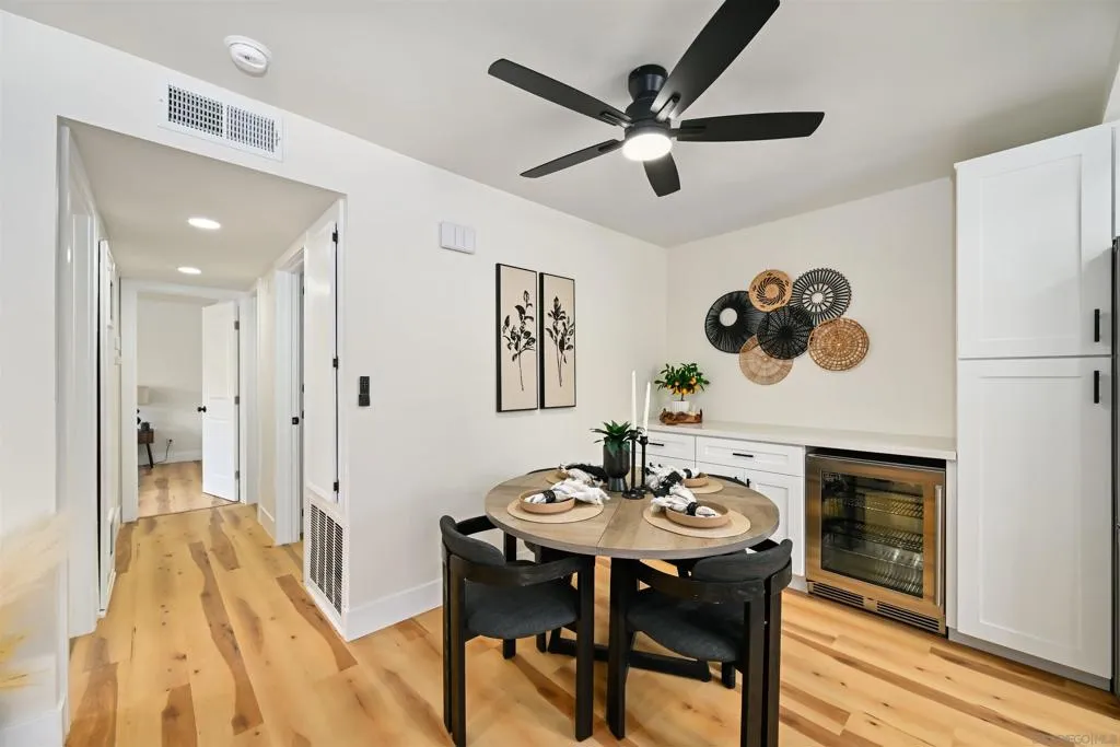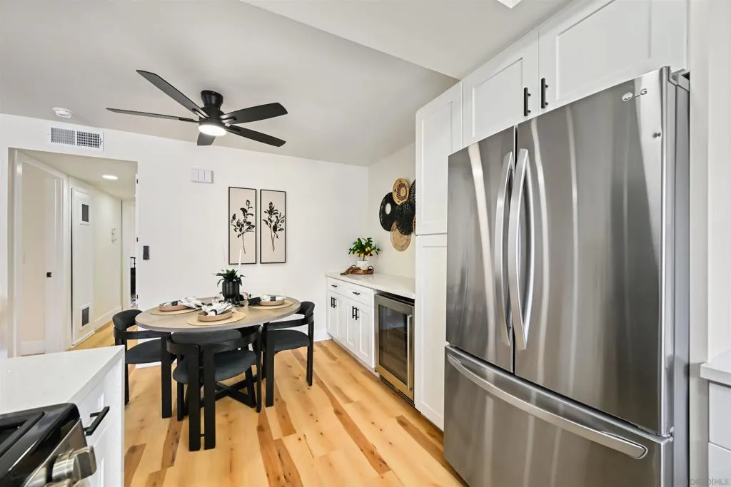 Welcome to this beautifully remodeled upper-level residence in one of Santee’s most sought-after gated communities. This turnkey 2-bedroom, 1.5-bath home has been thoughtfully upgraded throughout, offering a perfect blend of modern style and everyday comfort. Enter to a bright and open living space centered around a cozy fireplace—perfect for relaxing or entertaining. The brand-new kitchen is a true showpiece, featuring stunning waterfall countertops, high-end appliances, a built-in wine fridge, new light fixtures, and extensive added cabinetry that provides both style and exceptional storage. Enjoy upgraded flooring throughout and a new HVAC system for year-round comfort. A brand-new in-unit washer and dryer add everyday convenience, while both bathrooms have been tastefully remodeled with clean, modern finishes. Relax or entertain from your private balcony entrance, offering a seamless indoor-outdoor lifestyle. The home also includes two convenient parking spaces: a detached garage and an assigned outdoor spot nearby. Residents enjoy access to community amenities, including a pool, playground, and beautifully maintained grounds. Ideally located near top-rated schools, the YMCA, Santee Sportsplex, Town Center Park, the San Diego River, and a variety of shopping and dining options—with quick access to the 52 and 67 freeways.