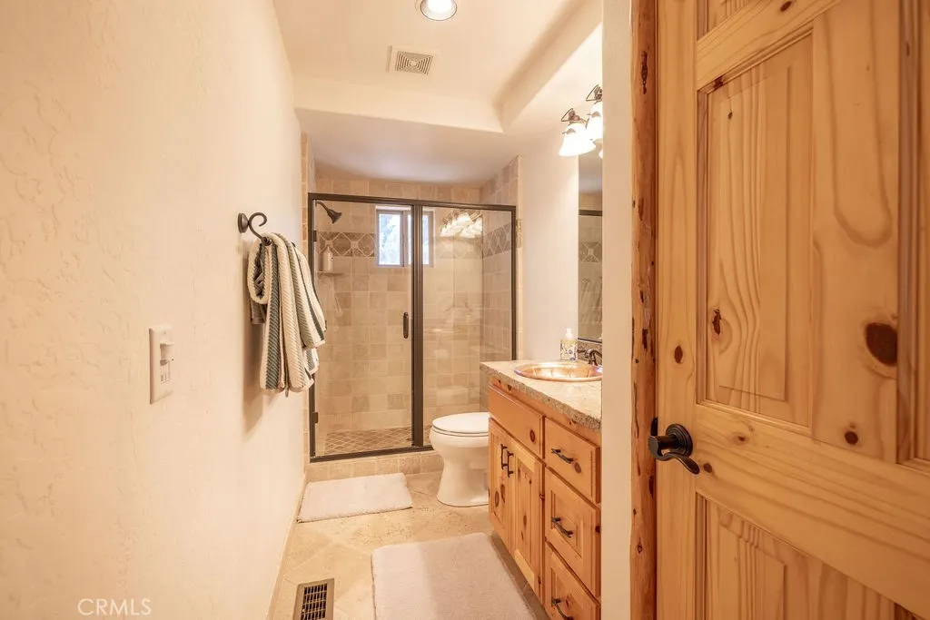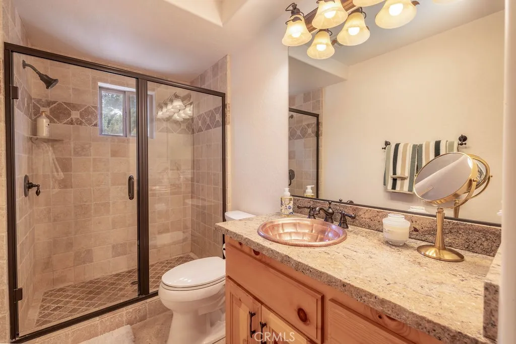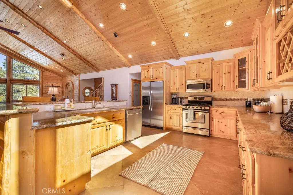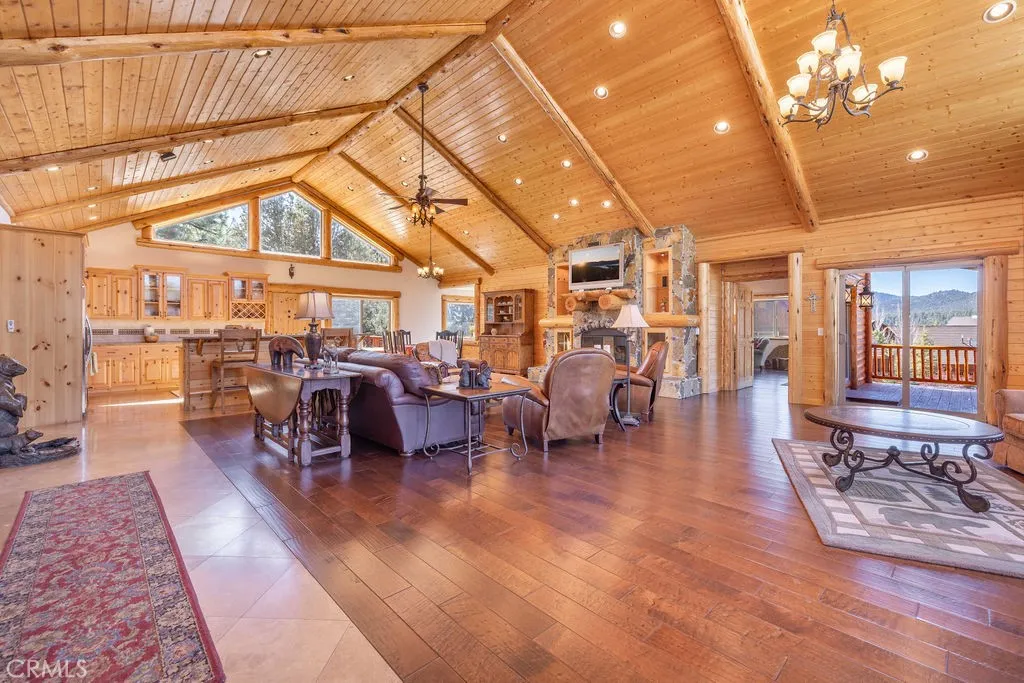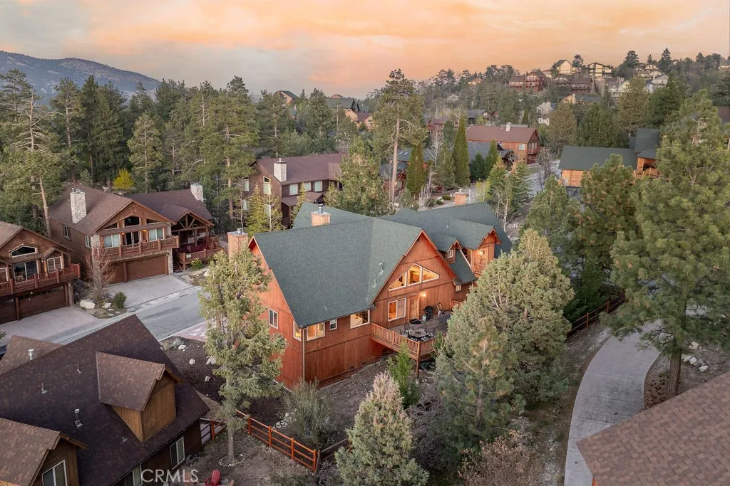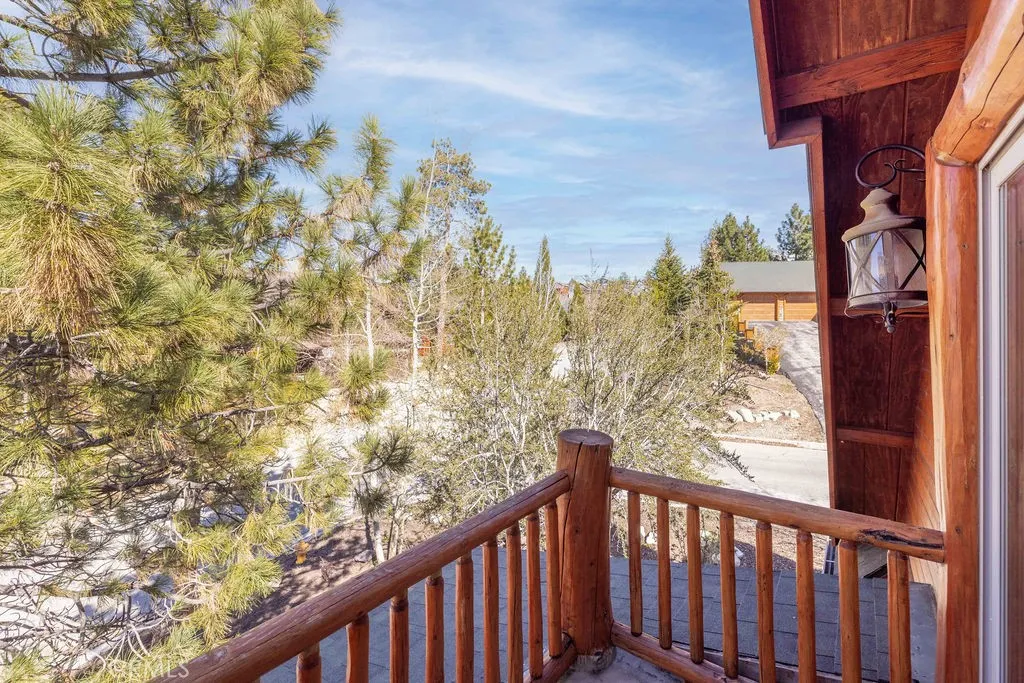 Located in the highly desirable Castle Glen Estates neighborhood, this 4-bedroom, 3.5-bath log-style home offers 2,982 sq ft of mountain living on a 9,000 sq ft lot with partial lake views and a central Big Bear Lake location just around the corner from the lake, forest, paved walking path, boardwalk, ski resorts, shopping, dining, and year-round events at the Convention Center. Built in 2006, the home features a spacious and functional layout highlighted by a stunning great room with soaring vaulted ceilings, expansive windows, and a floor-to-ceiling custom stone fireplace that serves as the focal point of the living space, complemented by rich wood finishes and beautiful log construction throughout. The kitchen opens to the main living area and offers ample cabinetry, counter space, a breakfast bar, a layout ideal for entertaining or hosting. The primary suite includes its own fireplace and generous space with its own front balcony and patio access, while the guest suite also features a fireplace, creating multiple cozy retreat areas within the home. With a total of three fireplaces, the property delivers both comfort and character throughout. Outdoor living is maximized with a front porch, back deck with partial lake views, and three separate balconies that capture the surrounding mountain and neighborhood setting. Additional features include a 3-car garage configuration with a 2-car garage on one side and a separate 1-car garage, providing flexibility for storage, vehicles, or recreational equipment. Castle Glen Estates is known for its quality homes, underground utilities, and one of the most convenient and scenic locations in Big Bear, offering a blend of accessibility, views, and proximity to everything the area has to offer. Whether you’re looking for a full-time home, second home, or investment, this property offers the ideal blend of comfort, character, and mountain living!