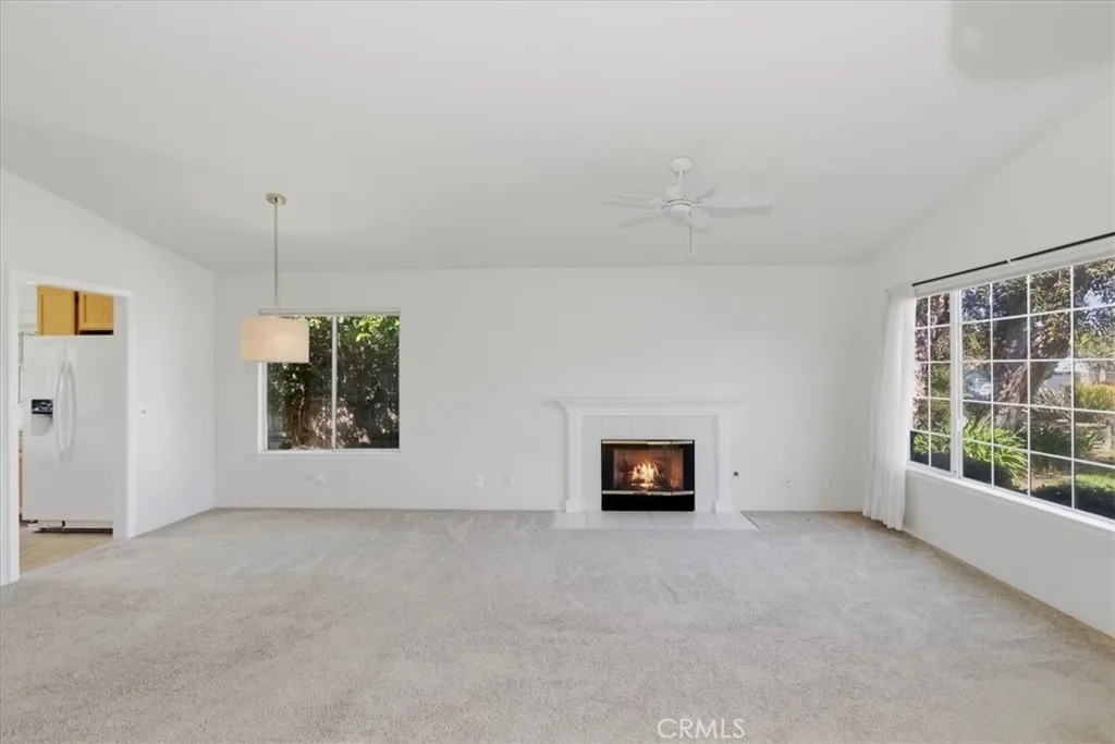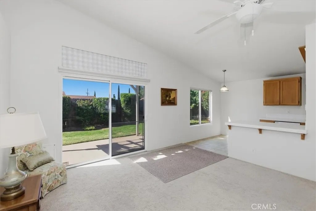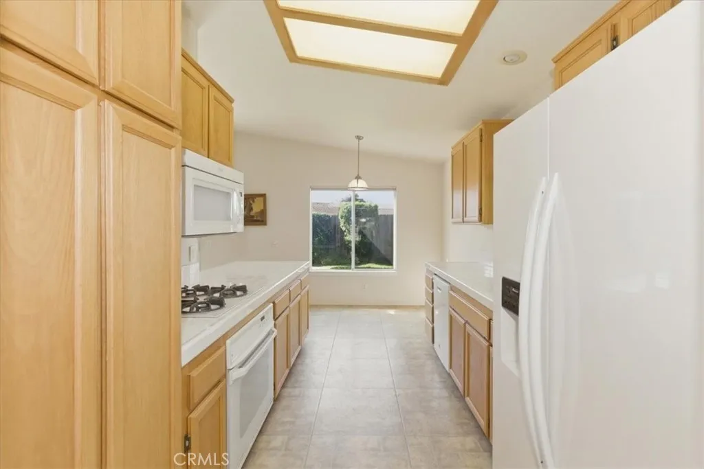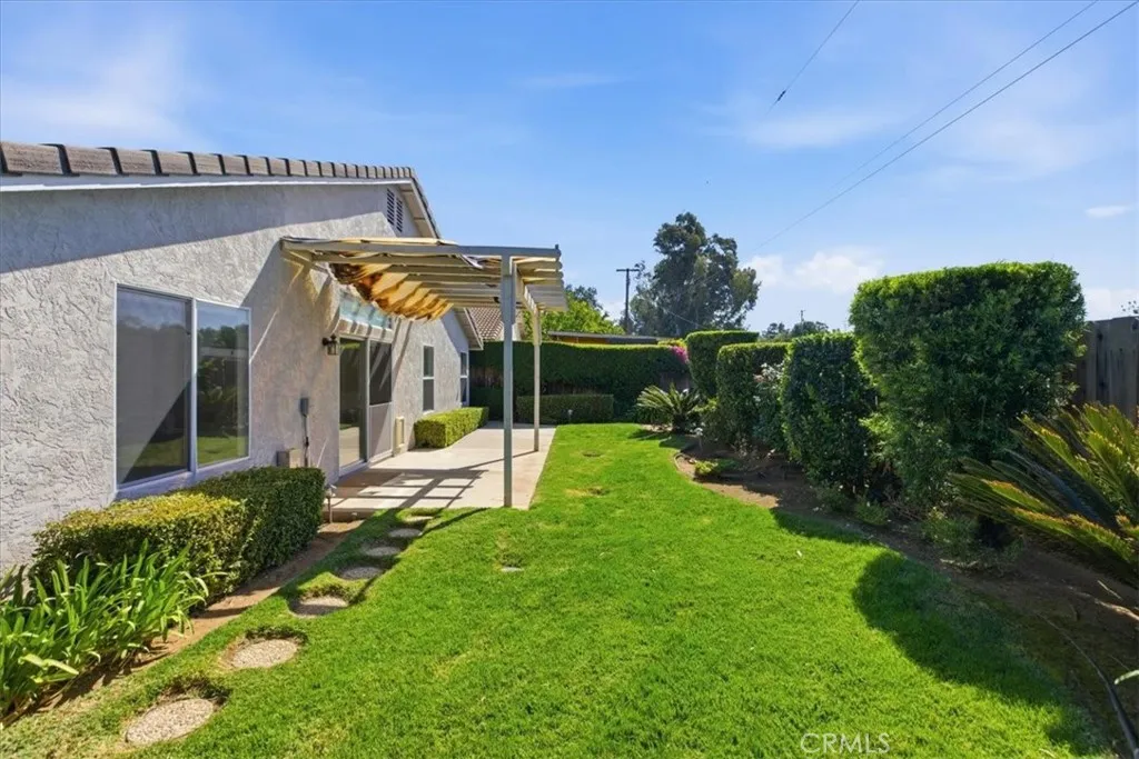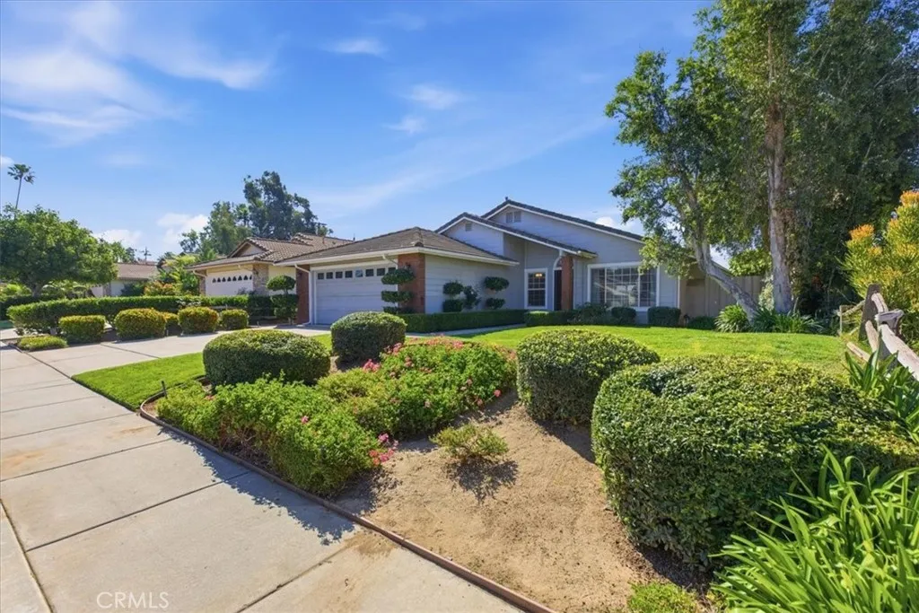 Welcome to this move-in-ready single-story ranch home tucked away on a quiet cul-de-sac in desirable Fallbrook. This charming 3-bedroom, 2-bath residence offers 1,620 square feet of comfortable living with a bright, open layout and thoughtful features throughout. Step inside to soaring vaulted ceilings, abundant natural light, and a spacious living room with a cozy gas-start fireplace—perfect for relaxing evenings. The oversized family room flows seamlessly from the living area, creating an ideal space for entertaining or everyday living. The kitchen features a gas cooktop, microwave, garden window, and a sunny dining area, all positioned to enjoy views of the beautifully maintained backyard. Dual-pane windows, ceiling fans throughout, and wide hallways enhance comfort and functionality. The primary suite offers two closets, mirrored wardrobe doors, and an en-suite bath with dual sinks and a walk-in shower. Additional highlights include indoor laundry with gas or electric options, a garage sink, and ample storage. Outside, enjoy a manicured yard with automatic sprinklers, a covered patio for outdoor dining, and mature fruit trees, including orange and grapefruit. The landscaped front yard, brick veneer accents, tile roof, and roll-up garage door add to the home’s curb appeal. Located on a peaceful cul-de-sac, this home offers privacy while remaining close to local amenities. A fantastic opportunity for first-time buyers or anyone seeking easy single-level living.