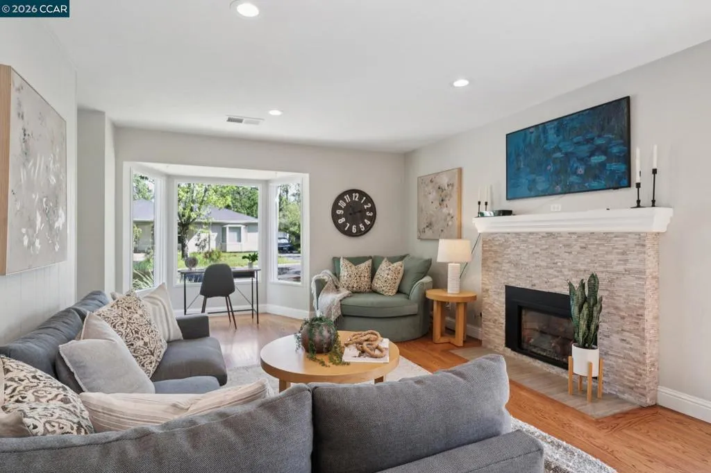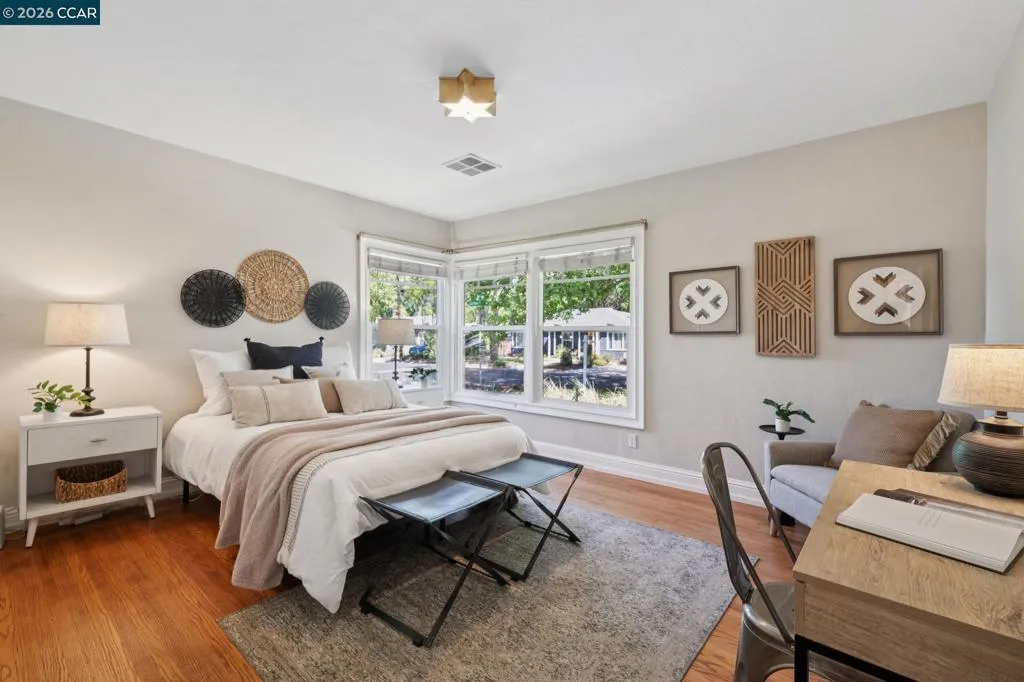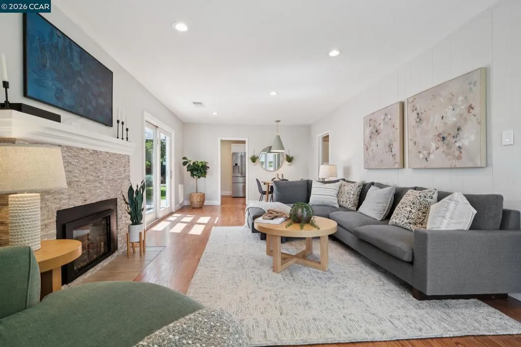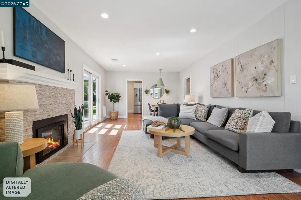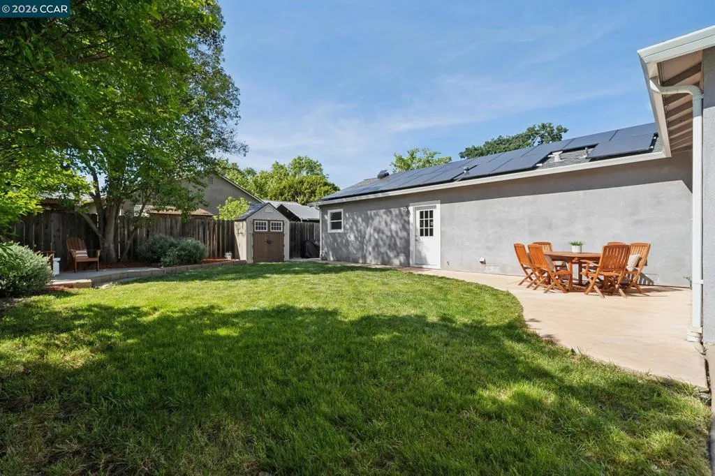 10/10. Absolute Jewel Box of a single level home in the beloved El Dorado Park! Jump in the wayback machine to days when everyone walked around the neighborhood, kids swang in tire swings, bikes were ridden & neighbors knew each other. Holidays are happily celebrated here with lights + decor out for every season. There are few spots like it: you need to drive through it to fully grasp the sunny, nostalgic vibe. The neighborhood is captivating...and the home? Gorgeous, updated + ready for you to move right in! Thoughtfully expanded years back w/ a breathtaking primary suite offering multiple closet areas & spa-like primary bath. Interior laundry room was constructed w/ built-in cabinetry and spacious, finished 2 car garage offers great storage. The interior boasts warm hardwood floors, freshly painted kitchen cabinets & high end lighting courtesy of Walnut Creek Lighting. An inviting family room is light-filled and delightful, w/ a fireplace & charming bay windows creating the quintessential reading nook. Not enough? How about OWNED NEMA2 Solar + a super fast ChargePoint EV charger! The corner lot offers mature trees, sprawling front lawn + beautiful backyard w/ lawn, pergola & garden area. Coveted convenient location near the trail, shopping center & highway 680: ideal for commuters.