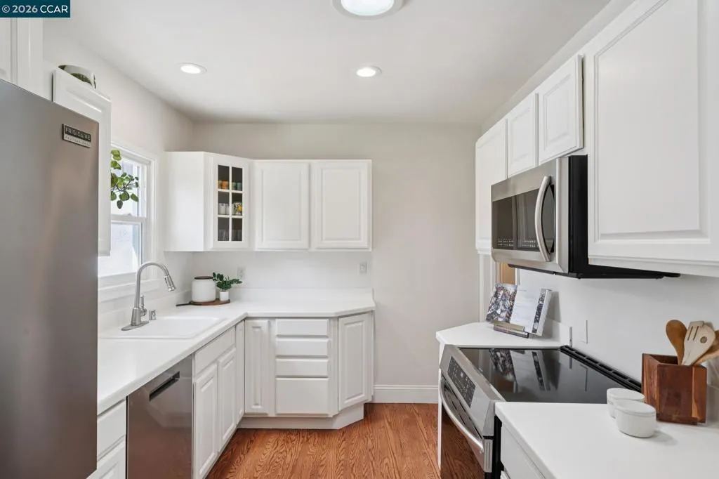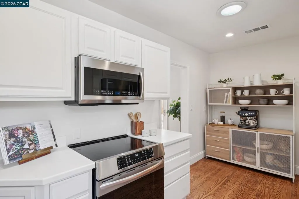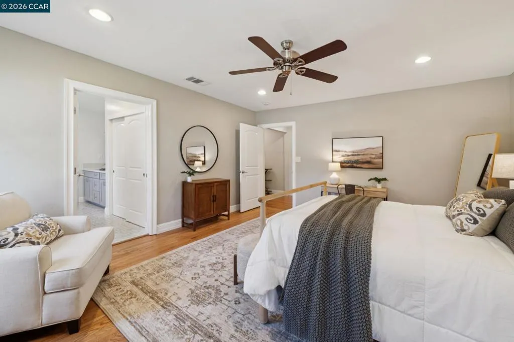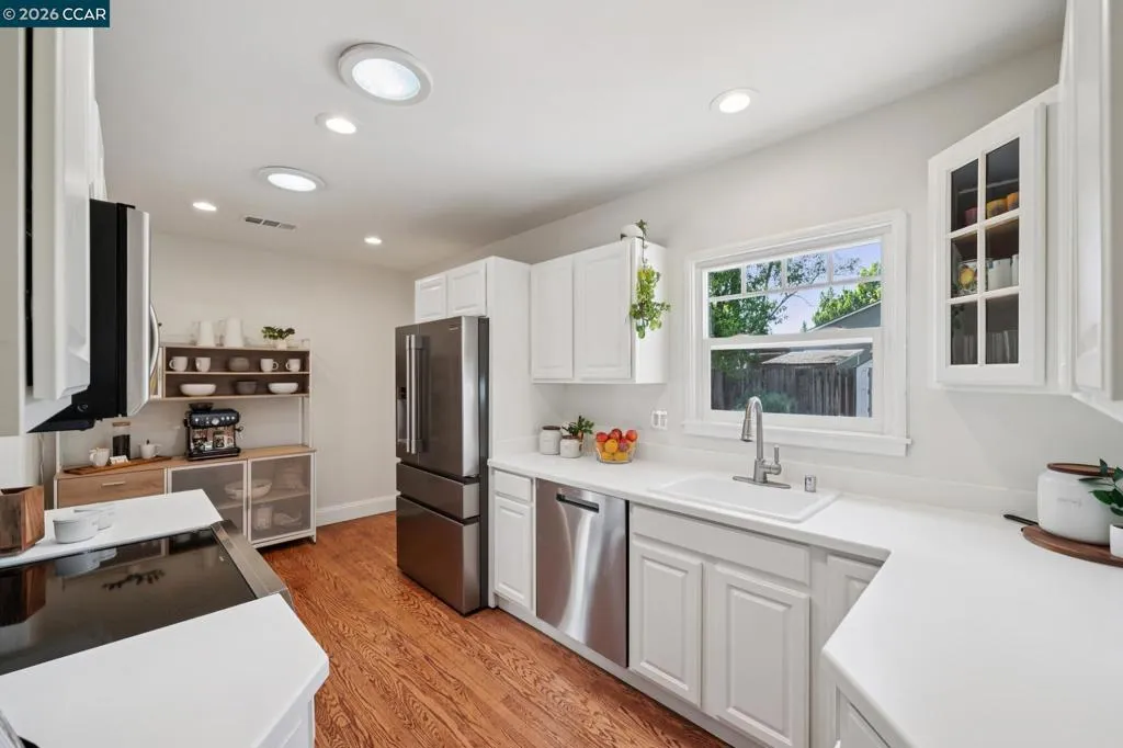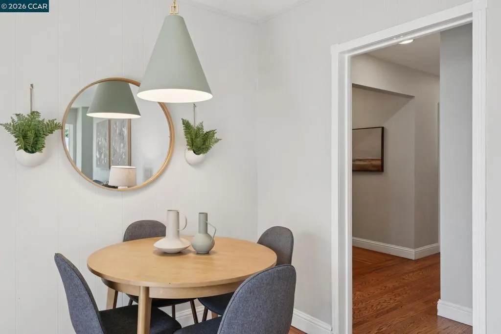 10/10. Absolute Jewel Box of a single level home in the beloved El Dorado Park! Jump in the wayback machine to days when everyone walked around the neighborhood, kids swang in tire swings, bikes were ridden & neighbors knew each other. Holidays are happily celebrated here with lights + decor out for every season. There are few spots like it: you need to drive through it to fully grasp the sunny, nostalgic vibe. The neighborhood is captivating...and the home? Gorgeous, updated + ready for you to move right in! Thoughtfully expanded years back w/ a breathtaking primary suite offering multiple closet areas & spa-like primary bath. Interior laundry room was constructed w/ built-in cabinetry and spacious, finished 2 car garage offers great storage. The interior boasts warm hardwood floors, freshly painted kitchen cabinets & high end lighting courtesy of Walnut Creek Lighting. An inviting family room is light-filled and delightful, w/ a fireplace & charming bay windows creating the quintessential reading nook. Not enough? How about OWNED NEMA2 Solar + a super fast ChargePoint EV charger! The corner lot offers mature trees, sprawling front lawn + beautiful backyard w/ lawn, pergola & garden area. Coveted convenient location near the trail, shopping center & highway 680: ideal for commuters.