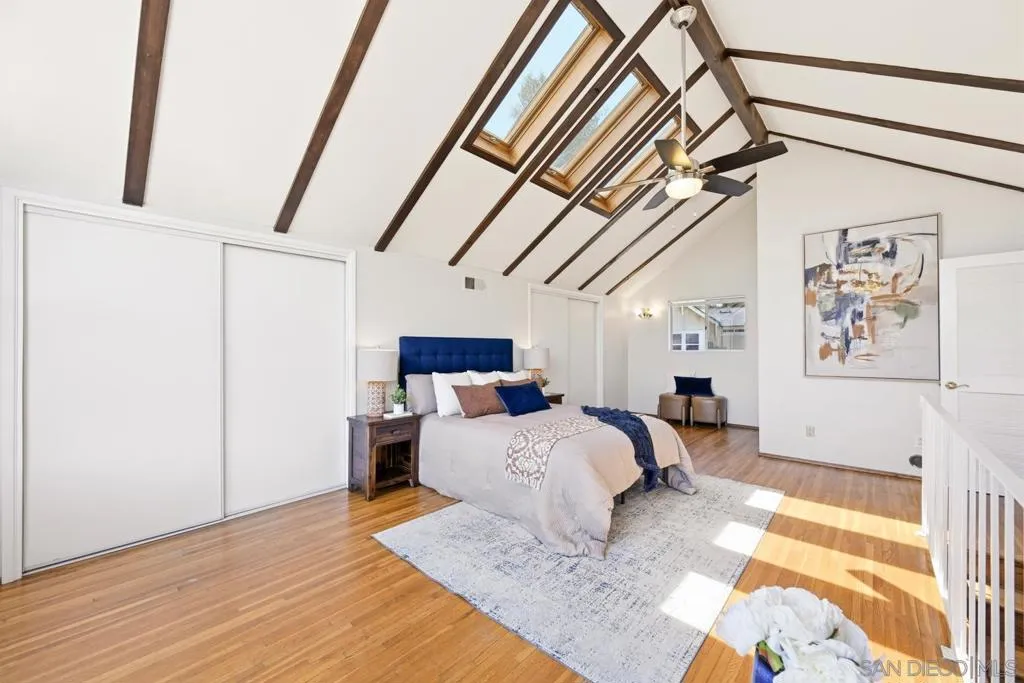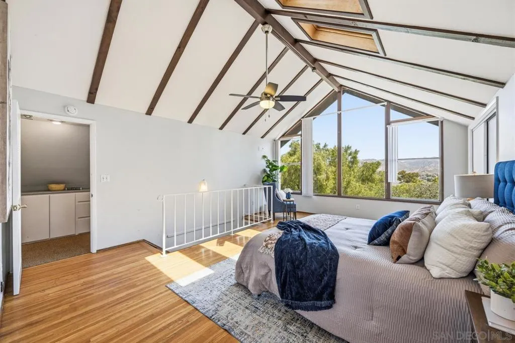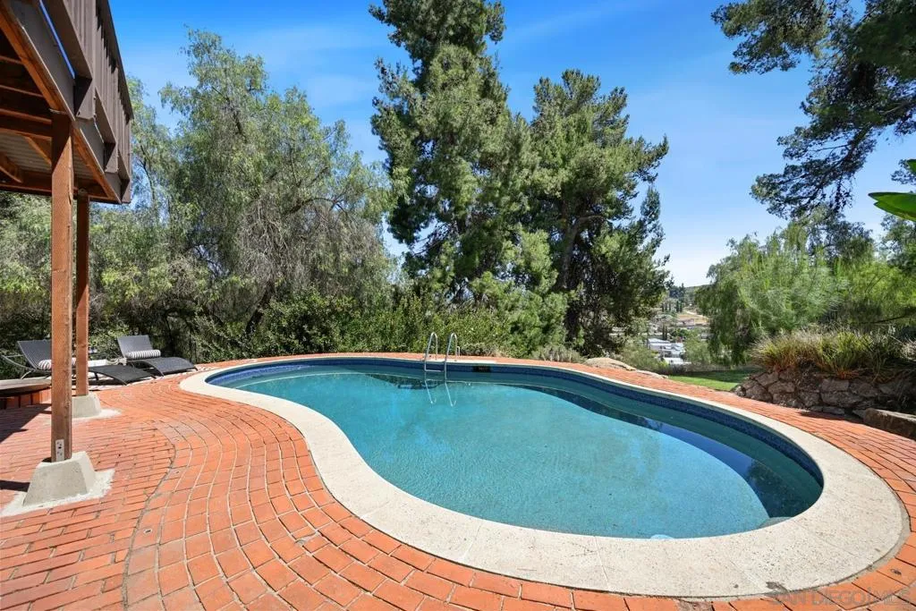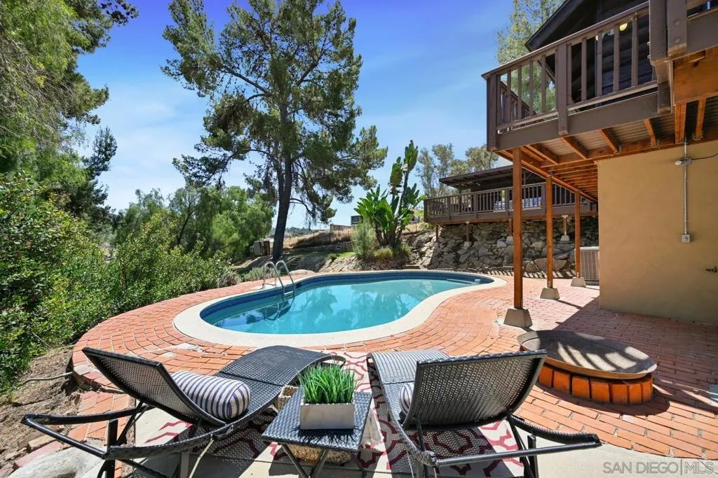 Secluded home offering cozy cabin vibes with stunning mountain views! Voluminous windows throughout bathe this 4-bedroom, 3-bath home in natural light. The entry-level includes 2 bedrooms, a full bathroom, kitchen, and living room—ideal for multi-generational living or added convenience. The spacious primary suite encompasses the entire top level, a loft-style retreat featuring vaulted wood-beamed ceilings with skylights, three closets, and serene panoramic views. The walk-out lower level adds incredible versatility with a full bedroom, bathroom, and spacious recreation room—perfect for guests, extended family, or potential rental income. The lower-level bathroom also functions as a cabana bath with direct pool access, enhancing seamless indoor-outdoor living and entertaining. Enjoy outdoor living at its finest with an expansive wraparound Trex composite deck, sparkling Pebble-Tec pool with newer pump and filter, and a pool safety fence. The grounds are thoughtfully equipped with an automatic sprinkler system, fruit trees, chicken coop, and swing set—offering both functionality and charm. Detached two-car garage with extensive built-in storage beyond the parking bays. Below the garage, a large powered workshop provides exceptional space for projects or hobbies, complemented by an additional storage shed. This property offers quiet living while being close to all conveniences. Additional highlights include a brand new high-efficiency HVAC system, recently painted interior, solar, and potential for an ADU or garage conversion. A full list of upgrades will be provided upon inquiry.