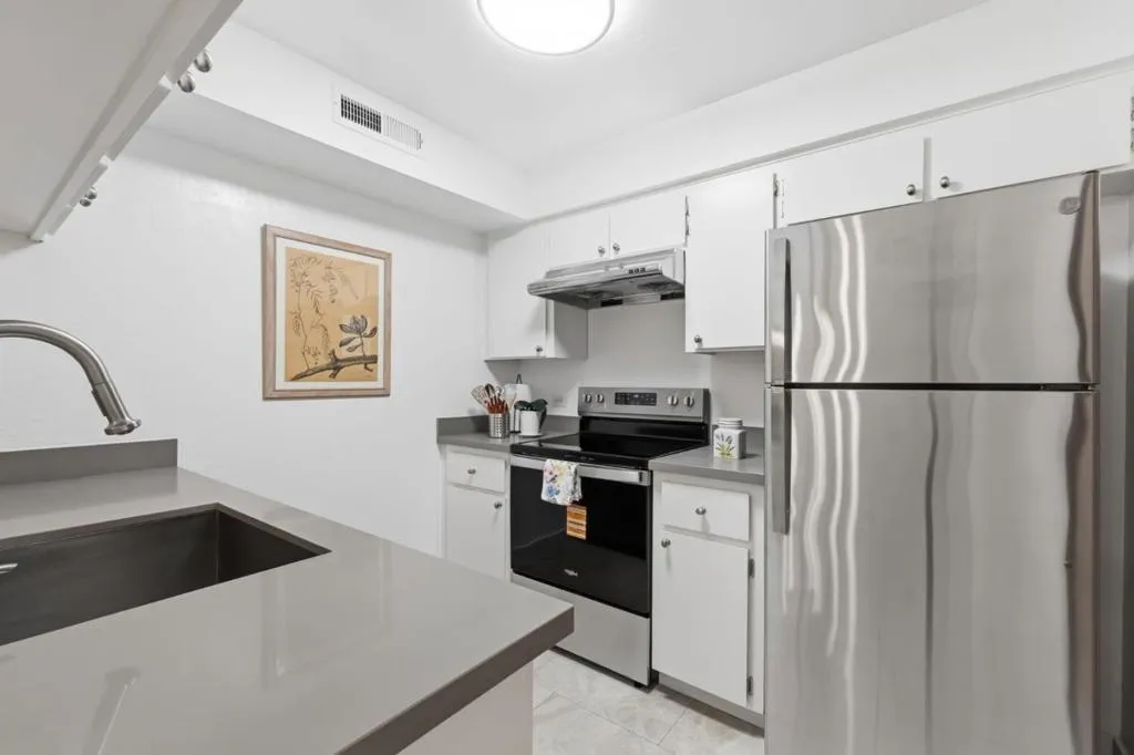 Beautifully updated, ground-floor, single-level condo in the desirable Admiralty community, ideally situated away from Foster City Blvd, offering enhanced privacy and a more peaceful setting. This home features an updated kitchen, remodeled bathroom with a tiled shower with built-in bench, and upgraded flooring throughout, along with fresh paint, new tile, and modern baseboards for a clean, contemporary feel. High-quality finishes include porcelain tiles from Bedrosians in the shower, kitchen, bathroom, and hallway, with additional tile in the dining area. Additional upgrades include dual pane windows, central forced heating, new stove with built-in air fryer, dishwasher, Panasonic bathroom vent, and updated lighting fixtures throughout. Enjoy a spacious covered patio with an outdoor storage shed - perfect for relaxing or entertaining - plus a 2-car carport and additional storage for convenience. HOA dues cover water, gas, hot water, trash, exterior maintenance, landscaping, insurance, and access to amenities such as a pool, tennis courts, and sauna. Conveniently located near parks, shopping, and major commuter routes, this is a great opportunity to own in one of the most established communities in Foster City.