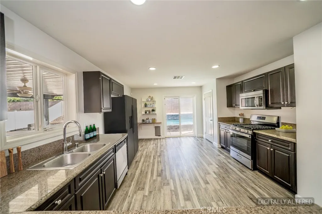 **POOL HOME** Welcome to 27341 Bramwell St- featuring 3 bedrooms/2 bathrooms and just under 2,000 sq ft on a generous CORNER LOT with private POOL and nestled among the scenic foothills! Step inside to find a spacious and inviting living room that flows seamlessly into the adjoining dining area and kitchen. Kitchen features a functional layout with a breakfast bar, ample counter space and plenty of storage. The generously sized primary suite provides a relaxing retreat with its own en-suite bathroom while two additional bedrooms share a well appointed full bathroom offering flexibility for family or guests. Outside enjoy your own private oasis designed for year round enjoyment boasting a sparkling pool, cozy fire pit and large patio with shaded space. Bonus: Home also has SOLAR- for energy efficiency. Prime location near newer shopping developments and easy freeway access, coupled with thoughtful layout and resort style backyard make this home a MUST-SEE!