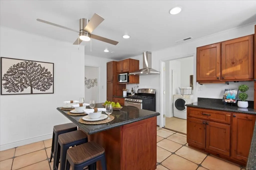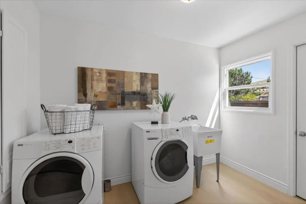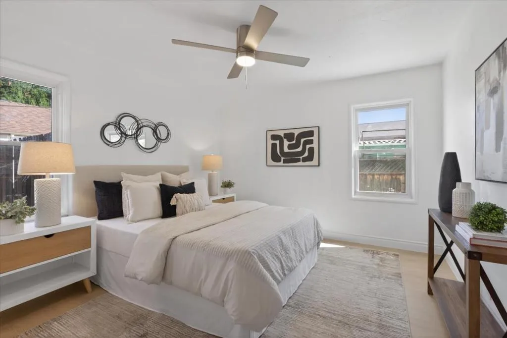 Home shows great! New exterior paint, new luxury vinyl rigid flooring(100% waterproof and 100% virgin PVC), new 5 inch baseboard, new interior paint, new interior lights, new ceiling fans, new plugs, new switches, new exterior laundry room door, new gate & more. New roof 4/25 with 10 year workmanship warranty. Bedrooms, living room, kitchen and dining room all have two windows each. Natural sunlight abounds. The kitchen features quartz countertops, island, 5 burner gas oven and range, microwave, dishwasher, refrigerator with ice and water, new exhaust fan, garbage disposal, recessed lights, fan, pantry & garden window. The living area is enhanced by a wood-burning fireplace and a bay window. The bathroom offers dual flush toilet, separate tub, and stall shower. Laundry amenities include washer, dryer & utility tub/sink. Additional features include small office, central AC, central forced air gas heating, double-pane windows, bedroom closets with lights, detached finished two car garage, tuff shed and extra long driveway. Dining options include a breakfast bar and a formal dining room. Convenient fenced yard and driveway and incredible Meyer lemon tree. Great Schools gives Piedmont High School a 10!