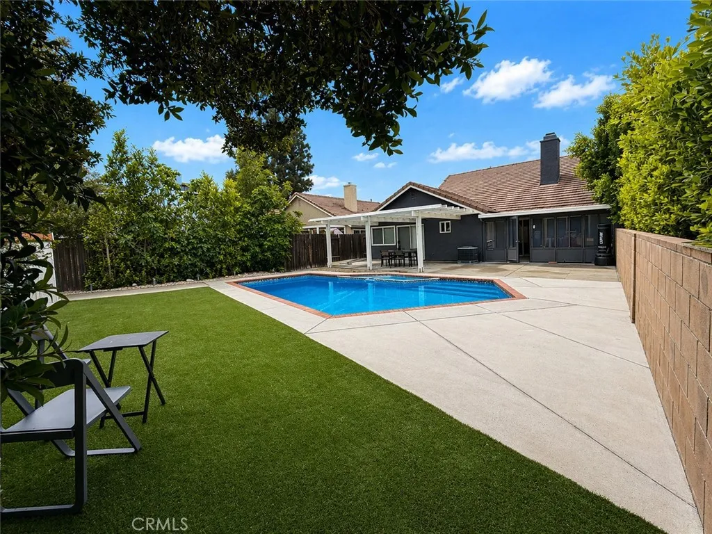 Stunning single-story gem nestled in the heart of Chatsworth — where timeless charm meets modern comfort. This beautifully maintained 4-bedroom, 2-bath home welcomes you with soaring high ceilings, rich wood flooring, and a sunlit living room anchored by an elegant fireplace — the perfect setting for relaxed evenings and effortless entertaining. The thoughtfully designed kitchen features gleaming granite countertops and warm wood cabinetry, offering both style and functionality. Both bathrooms have been tastefully remodeled, delivering a fresh, move-in-ready feel throughout. Step outside to your own private resort — a sparkling in-ground pool & Jacuzzi, covered patio, and lush, mature landscaping create a backyard oasis that’s made for California living. Whether you’re hosting summer gatherings or enjoying a quiet morning, this outdoor space truly delivers. Ideally situated near top parks, dining, shopping, and major commuter routes, this home offers the perfect blend of serenity and convenience.