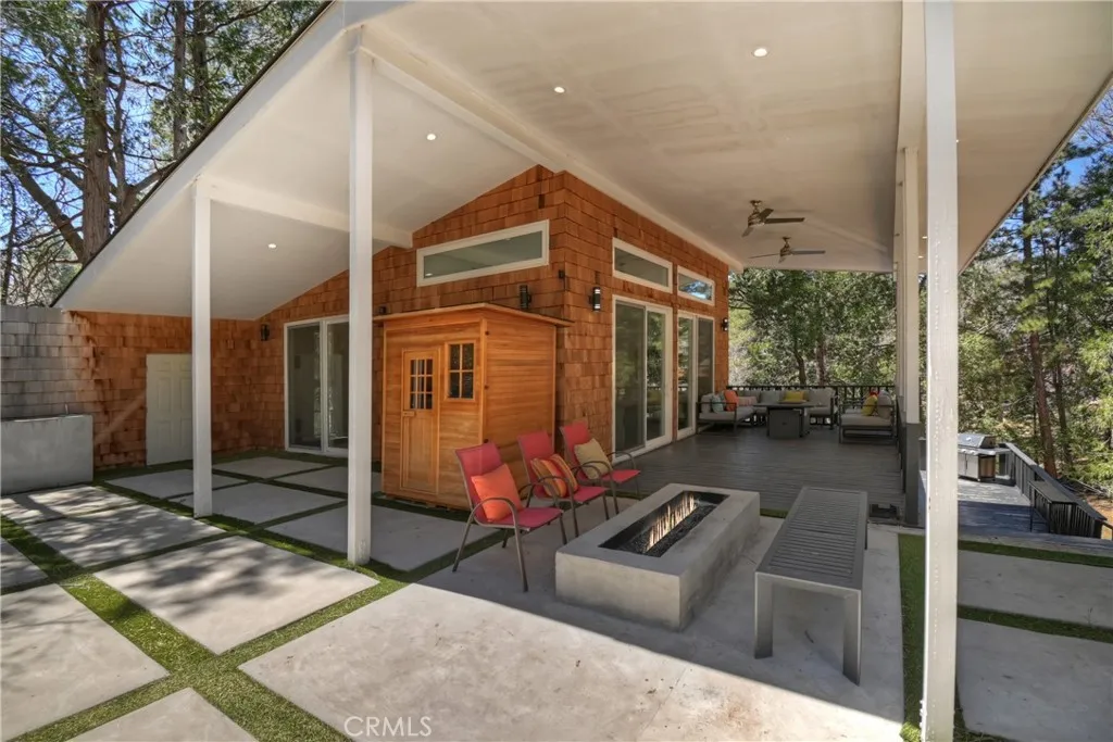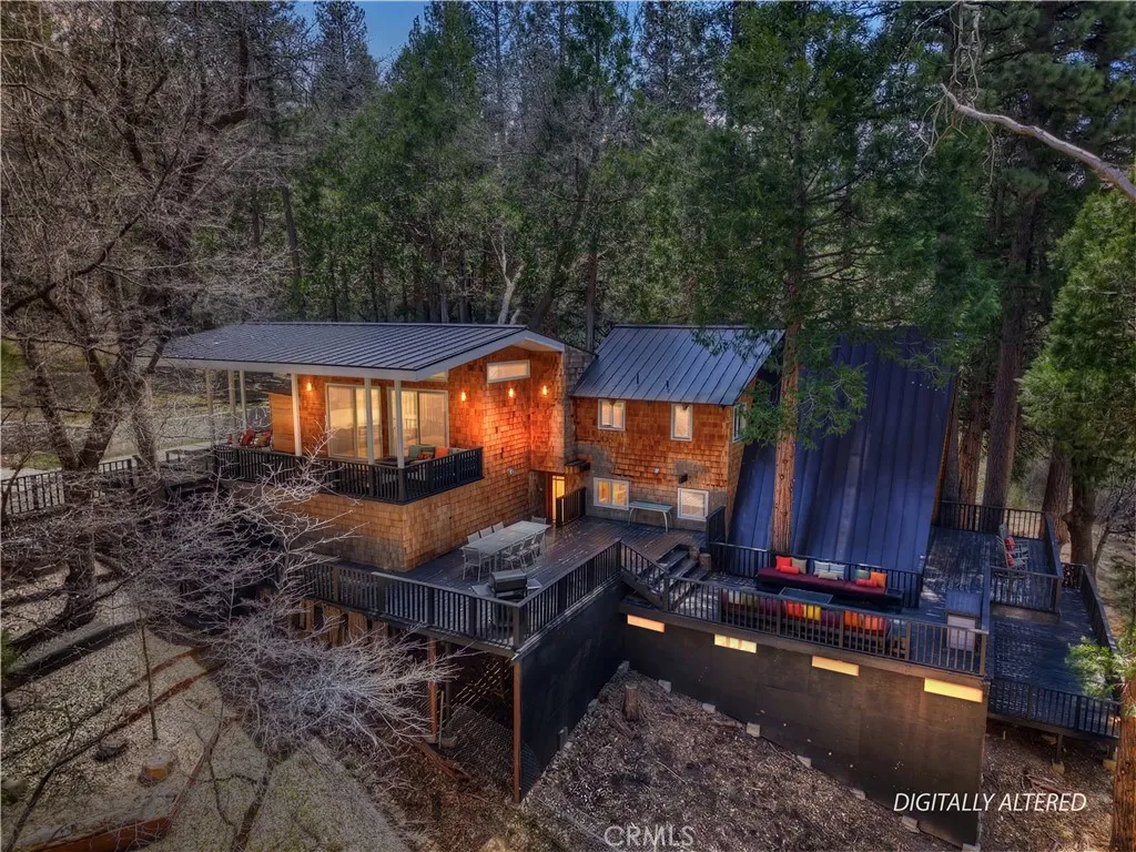 Step into your own secluded paradise where towering pines, fresh mountain air, and the gentle rustle of leaves create a sense of serenity that’s hard to find anywhere else ~ This enchanting A-frame custom cabin, perched on over 2 acres of pure bliss, offers the perfect illusion of total privacy ~ Whether you’re dreaming of adding a garage or workshop or creating an ADU, there’s room to bring your vision to life ~ Imagine mornings sipping coffee on your expansive deck as sunlight filters through the trees, and evenings wrapped in cozy warmth by the wood-burning stove as the forest whispers outside your windows ~ Inside, 2,400 sq. ft. of thoughtfully designed living space includes three spacious bedrooms, an additional sleeping area and a cozy office space, each level with its own full bathroom, and a family room crafted for connection, entertaining, and making lasting memories ~ Double glass doors create seamless indoor-outdoor living, opening onto over 2,000 sq. ft. of deck space that invites alfresco dinners, stargazing, or quiet reflection among the fresh smell of pines ~ Adventure is close ~ 3 miles to Snow Valley Resort, 5 miles to Sky Park at Santa’s Village, 7 miles to Lake Arrowhead Village for dining, shopping, and entertainment, and only 10 miles to Big Bear Lake ~ Additional amenities include, a metal roof, automatic start generator, EV charger, outdoor sauna, fire pits, two laundry areas, city sewer connection, and a gated entry, this all combines convenience with mountain charm ~ Whether you’re seeking a primary residence, a vacation retreat, or a smart investment, this property offers room to expand, build, and create the mountain lifestyle you’ve always dreamed of ~ Don’t just imagine it, experience the forest, the tranquility, and the magic of this one-of-a-kind sanctuary ~ 2015 Triumph 16'-10" fishing boat with fish finder and trailer can be purchased outside of escrow.